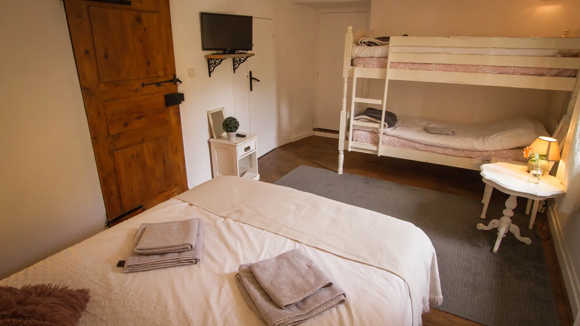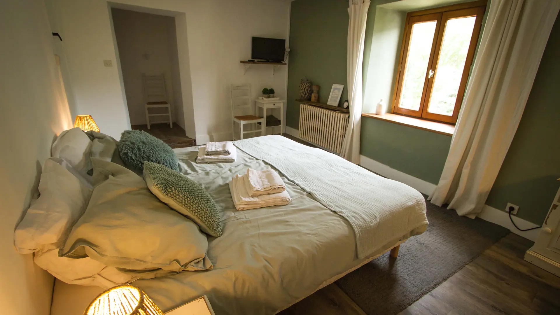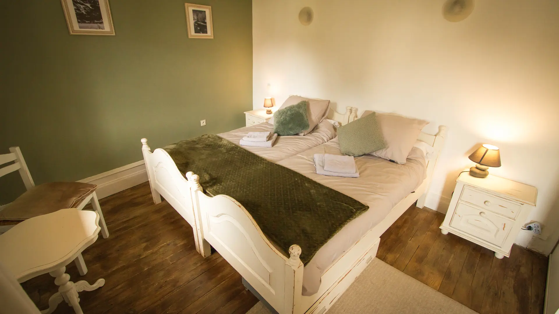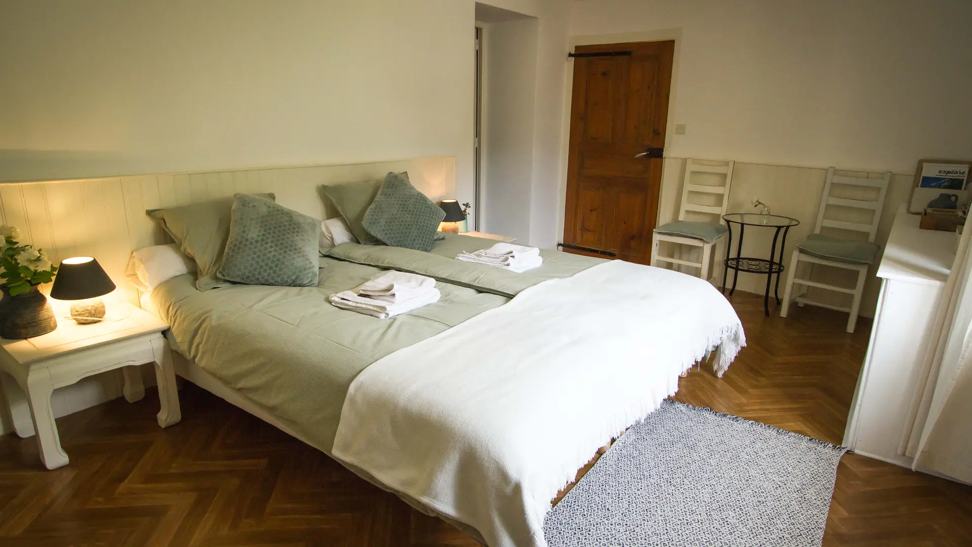 Les Airelles ont été rénovées avec style, dans le respect des éléments d'origine : murs épais, poutres en bois, cheminée chaleureuse. Nous disposons de cinq chambres et d'un appartement, chacun avec son propre caractère. À l'intérieur, vous pourrez profiter d'un coin salon chaleureux et d'une salle à manger commune ; à l'extérieur, du jardin et du soleil sur votre visage. Nous servons le petit-déjeuner avec amour, et si le temps le permet, même à l'extérieur. Nous sommes également à votre écoute pour vos besoins alimentaires particuliers.