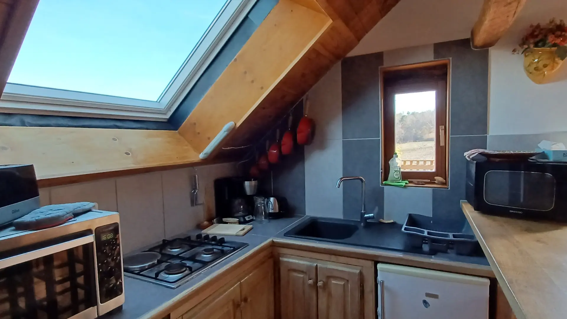 Entrée au 1er étage par terrasse, séjour coin cuisine, insert, TV, lave linge, lave vaisselle, accès Internet par wifi. 3 chambres dont 2 communicantes (2 lits 2 pers, 2 lits 1 personne), salle d'eau, 2 wc. Equipement bébé suivant disponibilité (faire la demande au moment de la réservation).