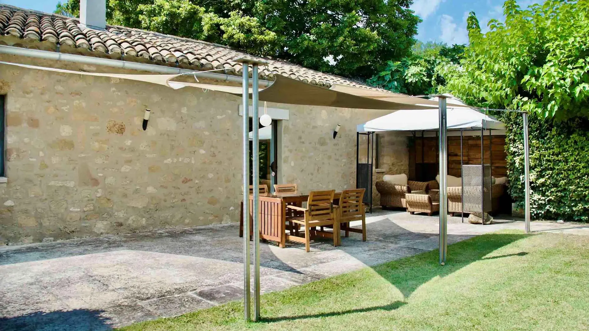 La maison « LES CERISIERS 5***** » à l’abri de l’agitation, offre un grand confort contemporain pour 2 adultes.