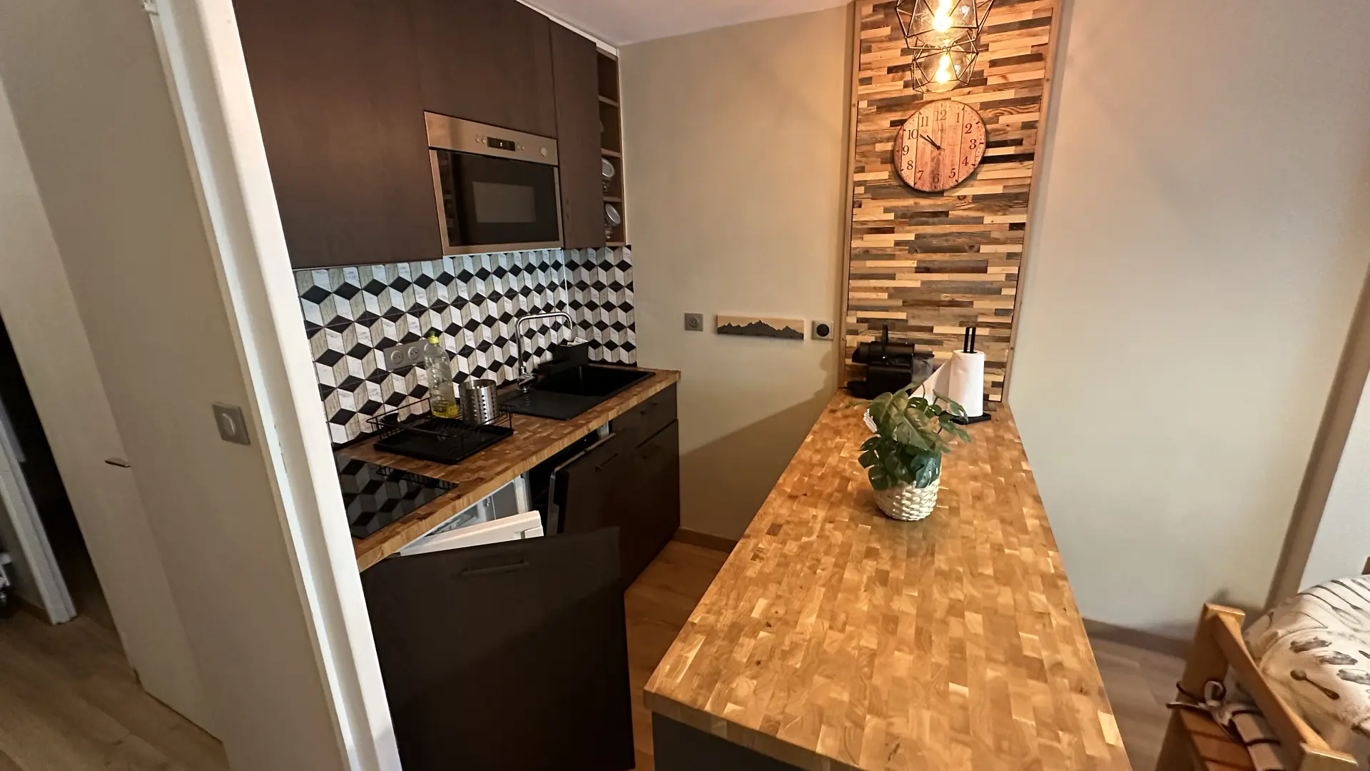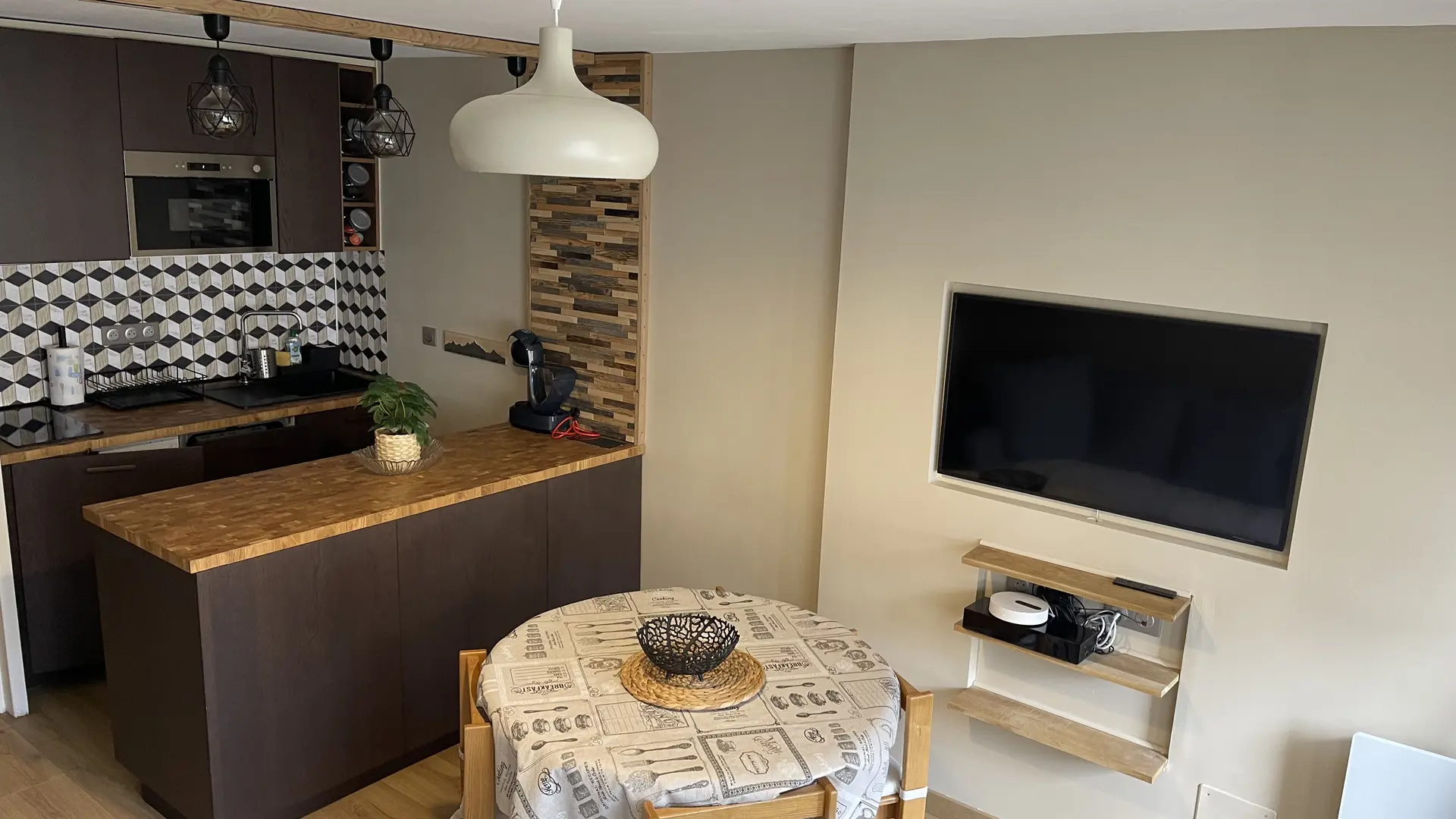 - Cuisine équipée et moderne (appareil à raclette, machine à café Nespresso, bouilloire, grille-pain, micro-ondes, réfrigérateur, lave-vaisselle, grand canapé-lit)