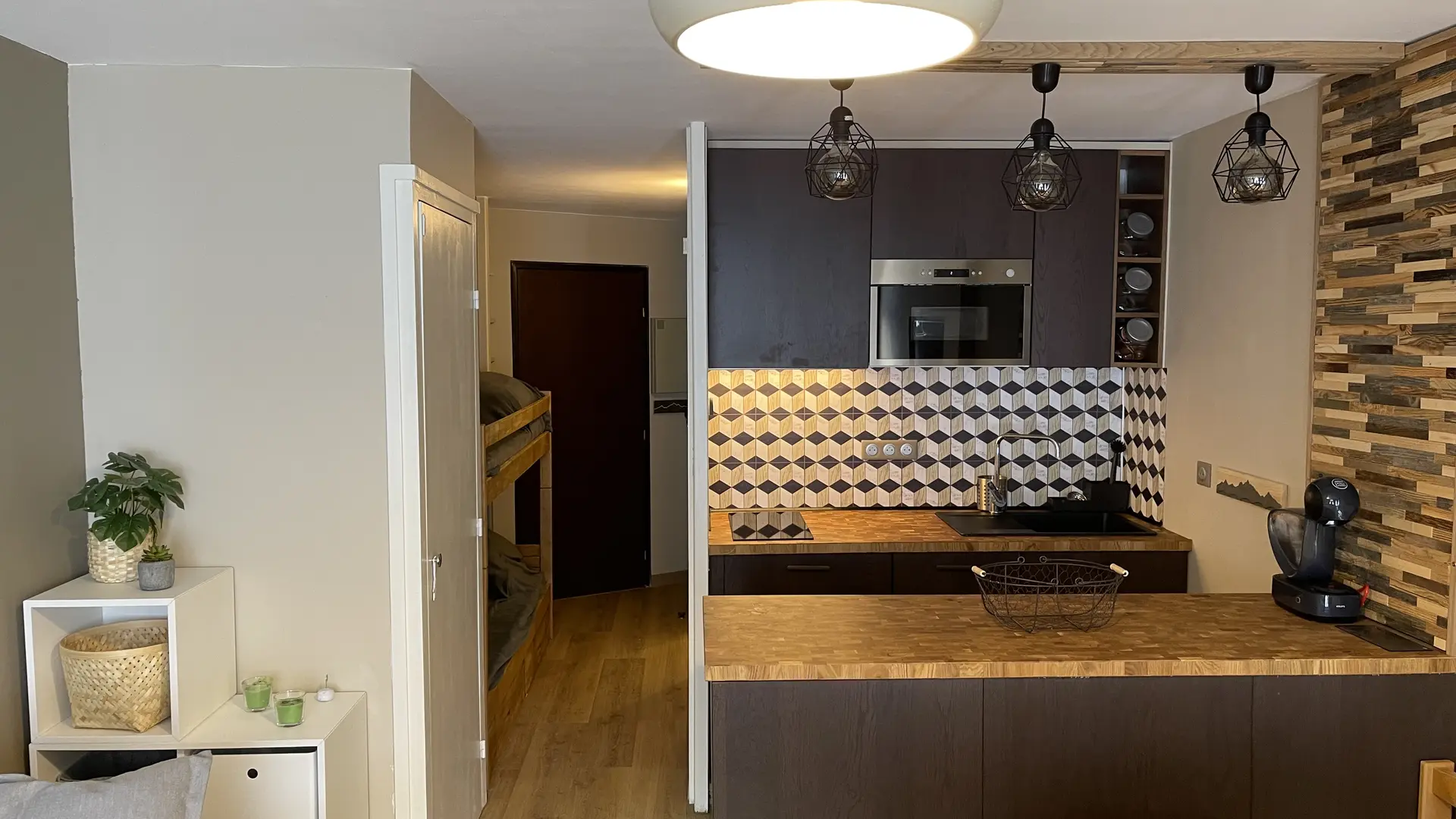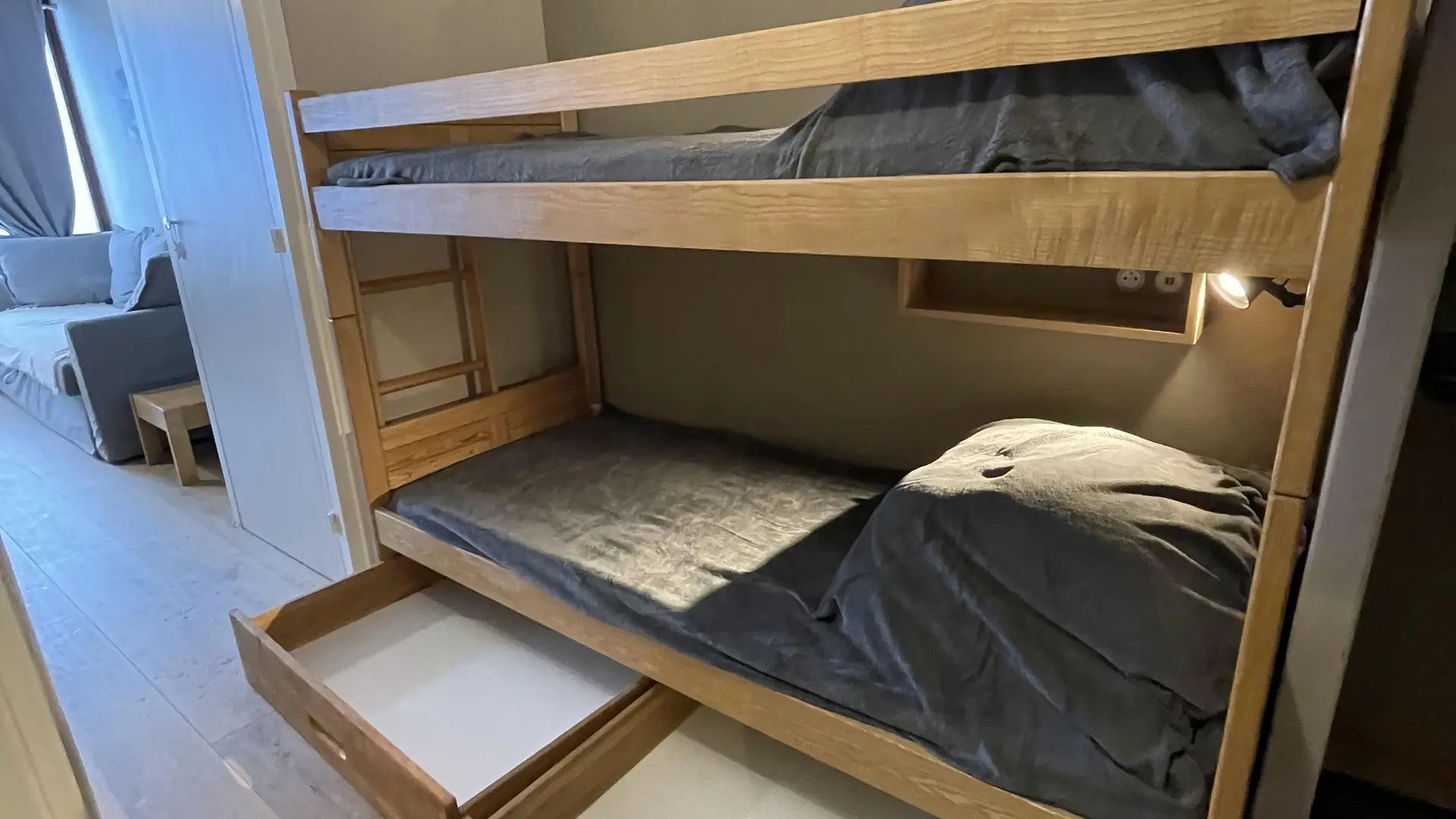 - Couchages : 1 canapé-lit et 1 lit superposé (capacité totale : 4 personnes)