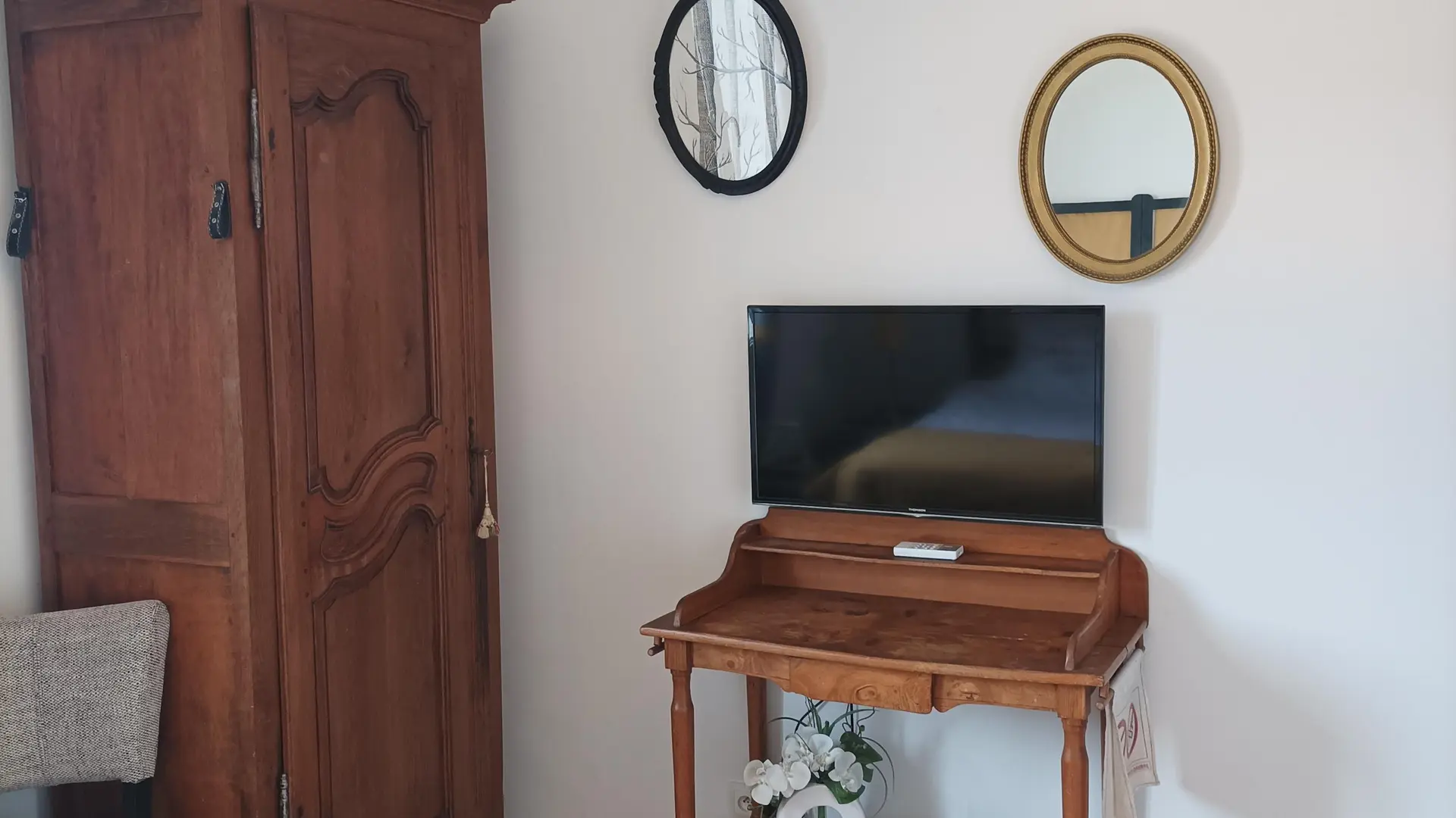 Elle est équipée d'une salle d'eau et d'un WC indépendant. Linge de toilette, produits d'accueil et sèche-cheveux à votre disposition, connexion Wifi offerte, parking assuré dans la propriété.