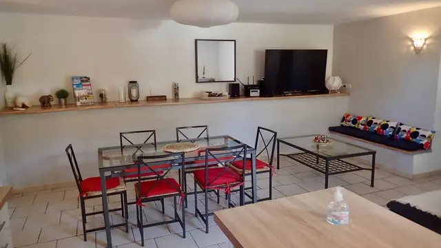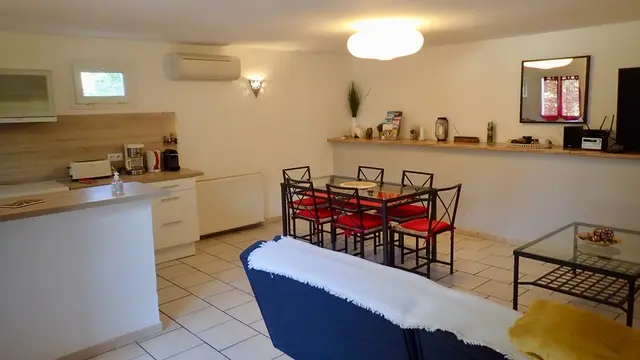 Appartement indépendant plain-pied de 68 m² dans une belle propriété de 300 m² avec un second gîte, piscine, terrasse, boulodrome, table de ping-pong et aire de jeux. Chien accepté sous conditions. Idéal pour un séjour en famille en Provence Verdon.