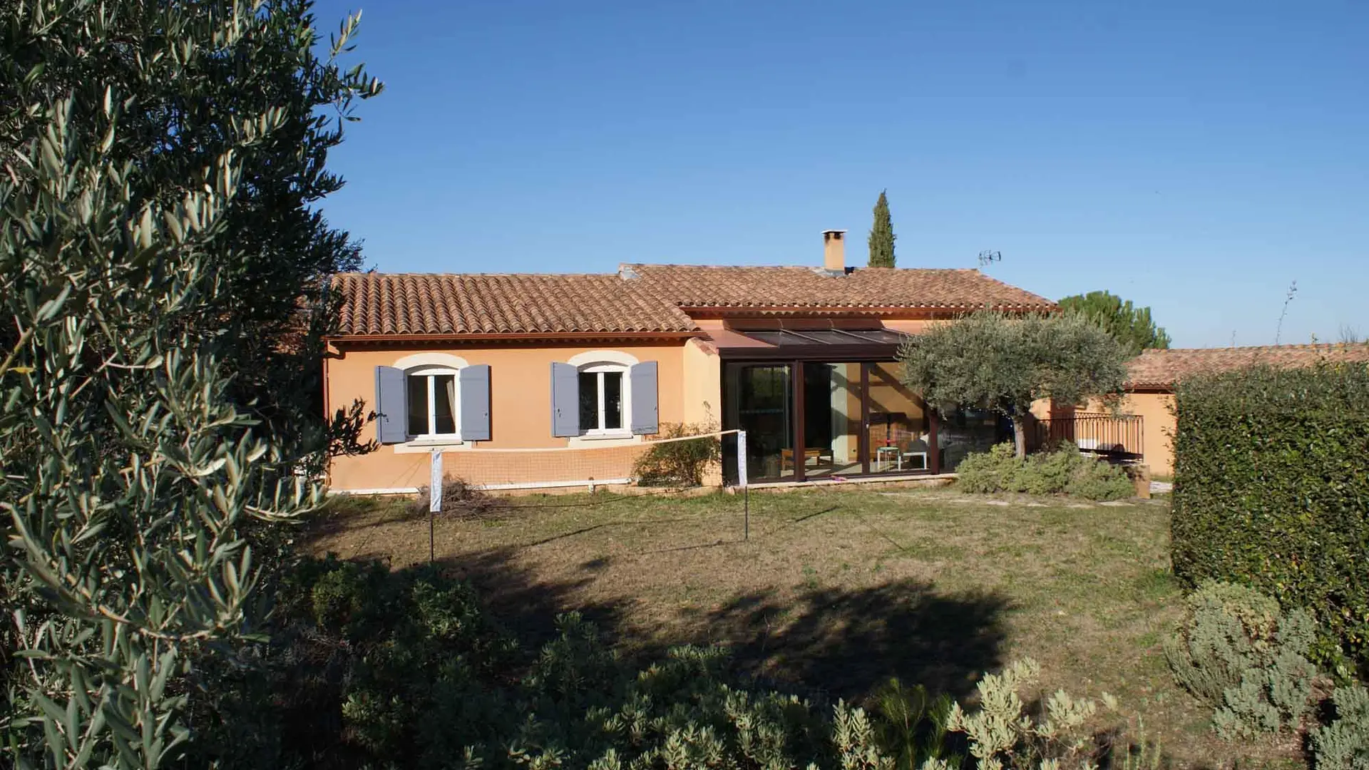 A Maubec, villa de plain-pied de 150 m², 3 chambres pour 6/8 personnes, sur terrain de 3400m² clôturé, dans un quartier très calme mais proche du village.