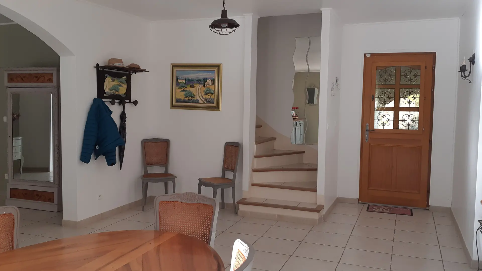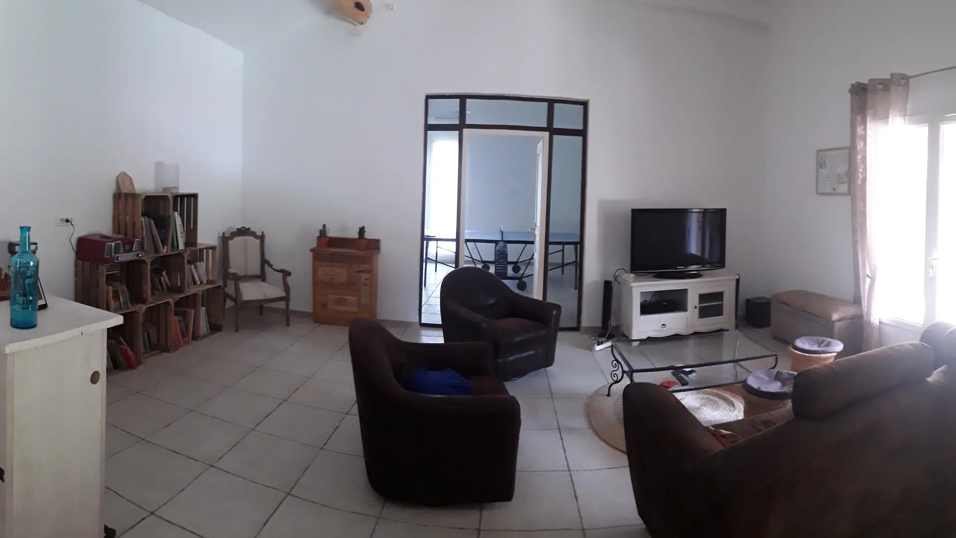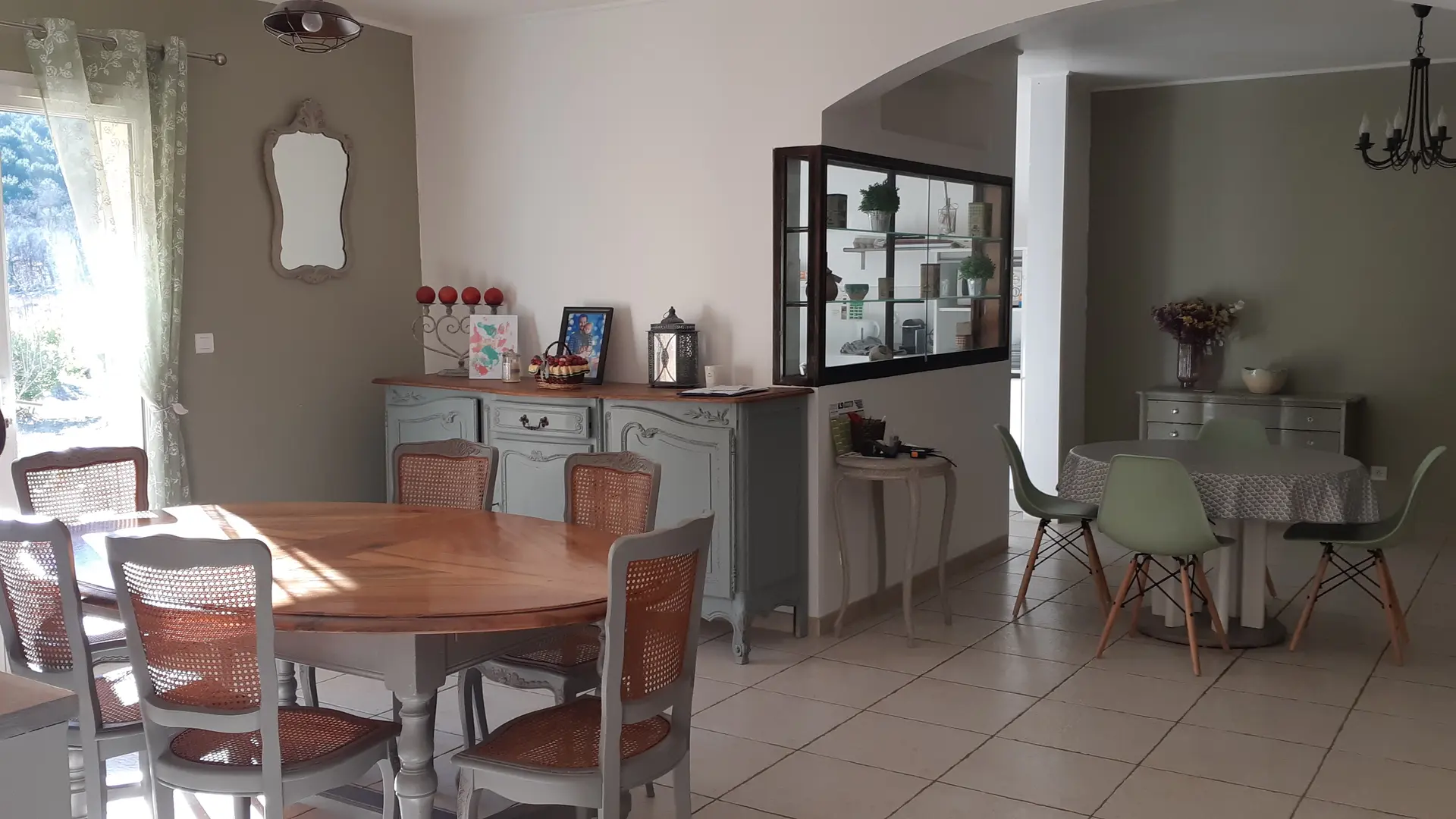 Un espace de vie de 75 m² où vous pourrez vous reposer au frais durant l'été comprenant un Séjour/salle à manger et un salon avec TV, DVD, jeux de société et livres...