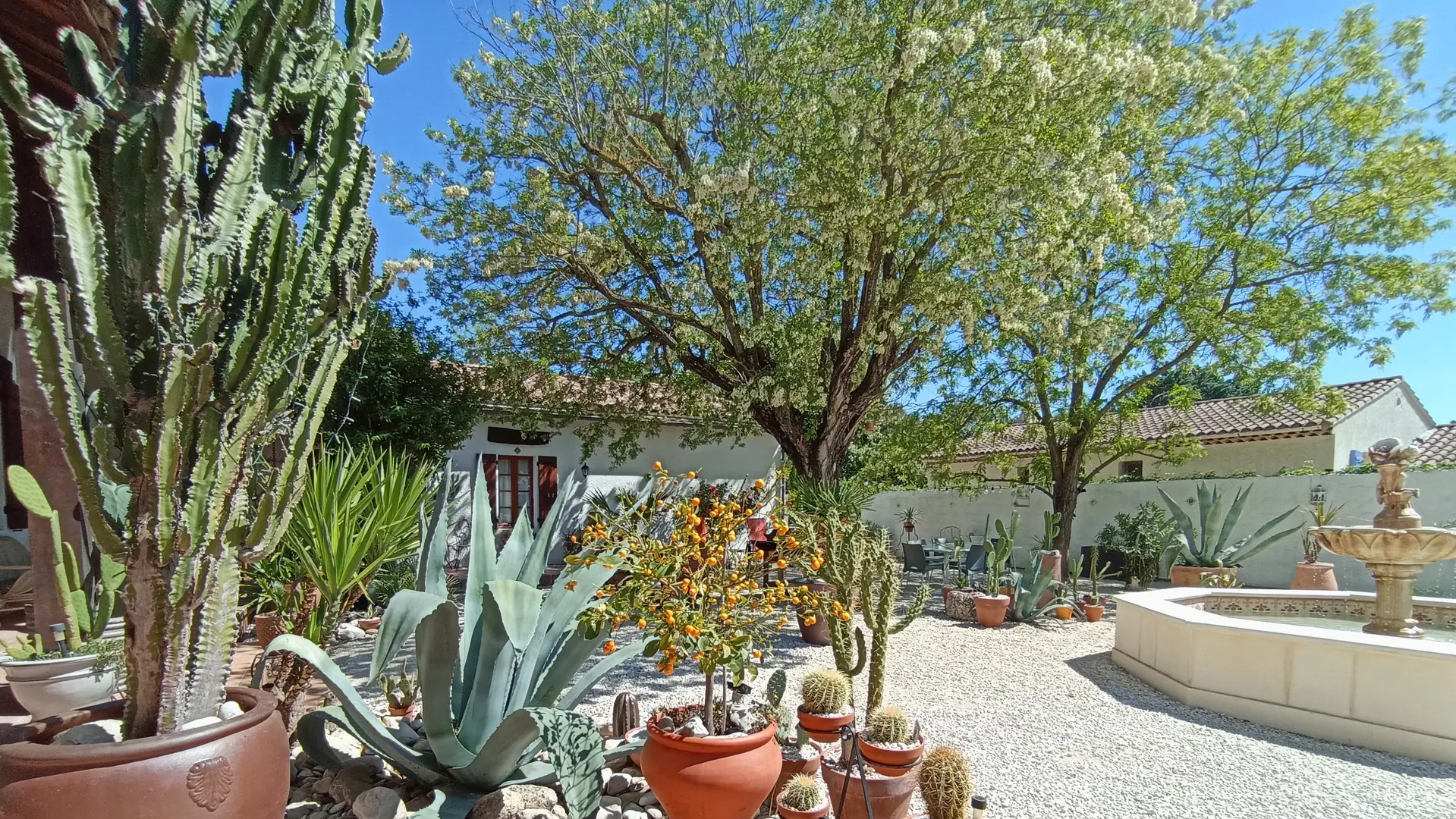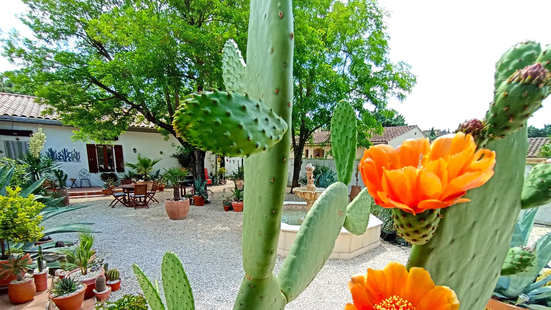 A Grillon, nos chambres d'hôtes sont dans un ancien hôtel restauré, entouré d'un jardin de cactus. Vous aimerez la tranquillité de l'Hacienda, son exotisme, la proximité avec le centre du village et la vue sur le Vialle.