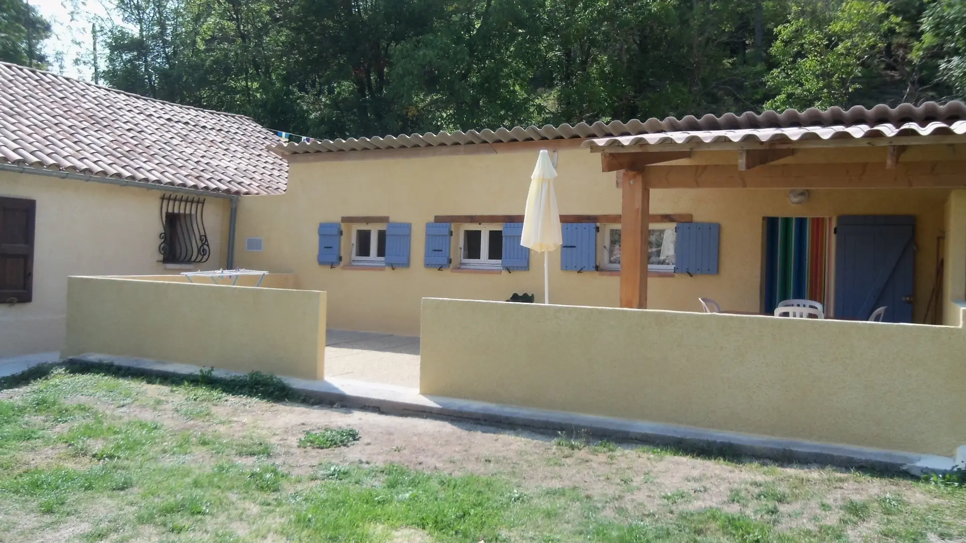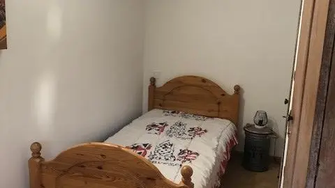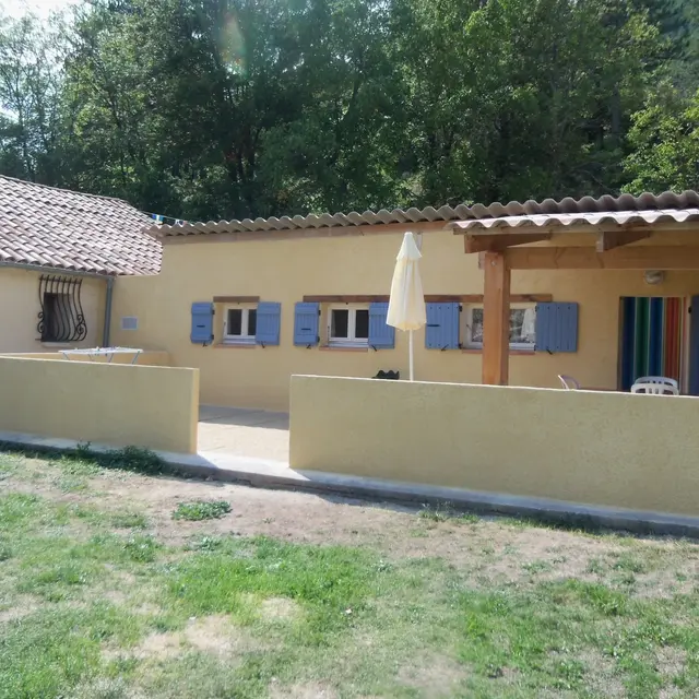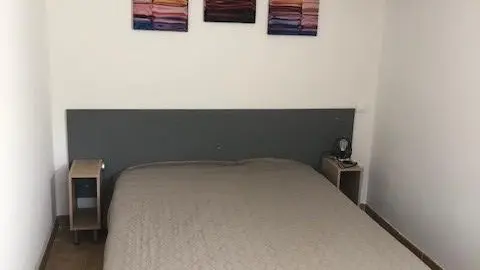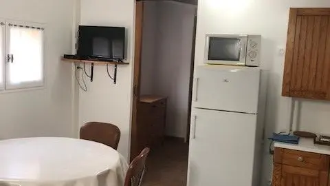 Séjour avec coin cuisine, 1 chambre avec 1 lit en 140, 1 chambre avec 2 lits en 90, salle de bains avec douche / wc. Terrasse couverte et jardin privatifs.