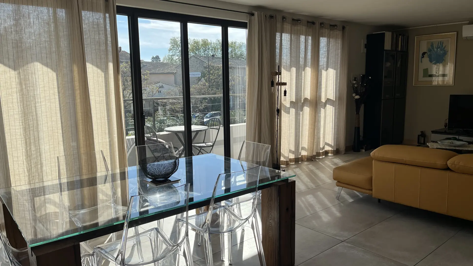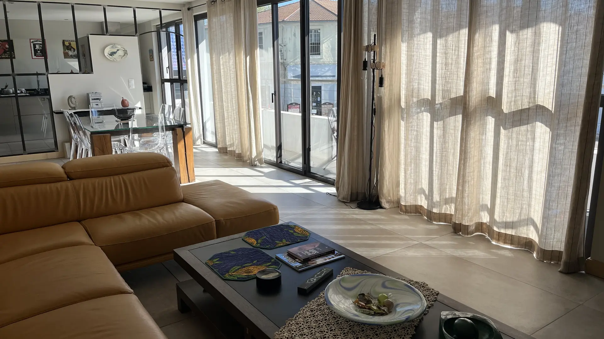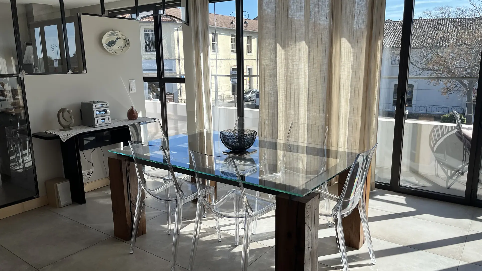 Salon-salle à manger entierement vitré avec balcon