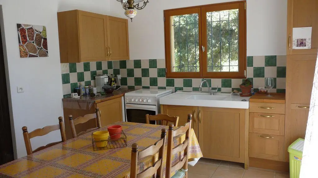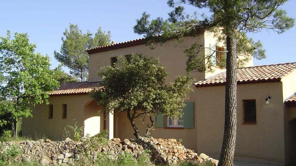 Belle villa récente, indépendante, en rez-de-chaussée plus un étage. Terrain boisé de 6 ha, vue dominante sur colline de pins et de chênes. Quartier résidentiel paisible. À 1500 m du village et de ses petits commerces accueillants.
