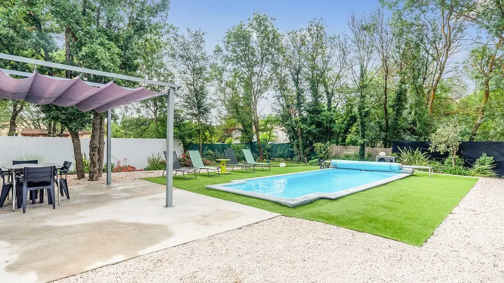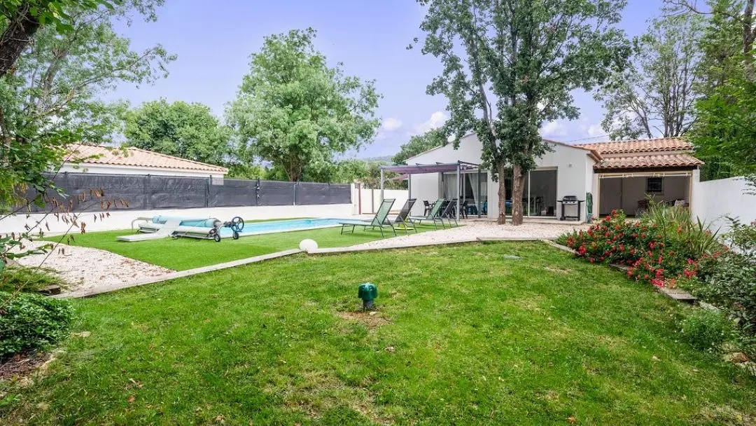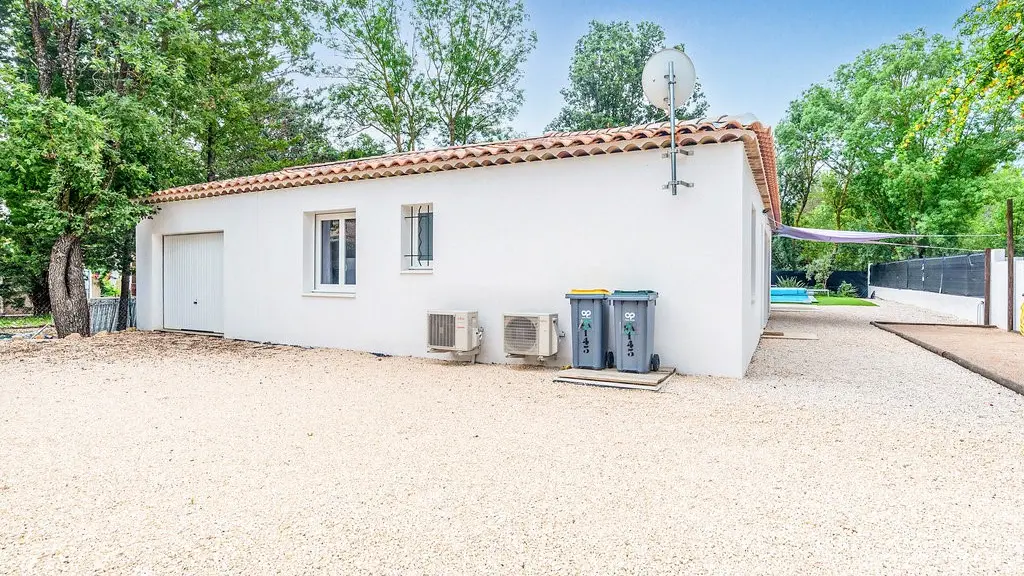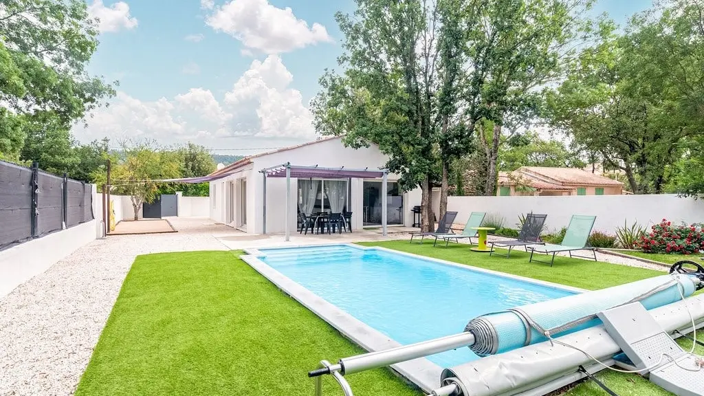 Belle maison indépendante plain-pied de 87 m² avec piscine, terrasse et terrain de pétanque. Située dans une propriété clôturée au calme avec vue sur la forêt. Idéal pour un séjour nature en Provence Verte.