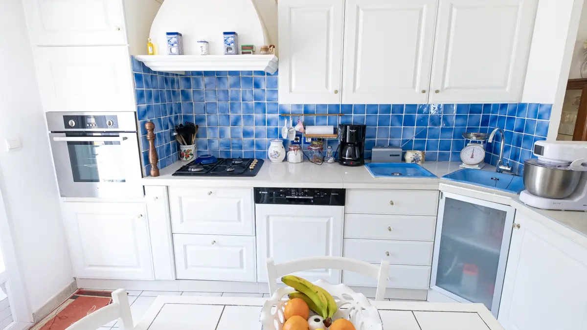 La maison est équipée d'un salon salle à manger de 43m² attenant à une petite cuisine donnant sur une terrasse de 80m² où se trouvent tout le nécessaire pour les repas.
