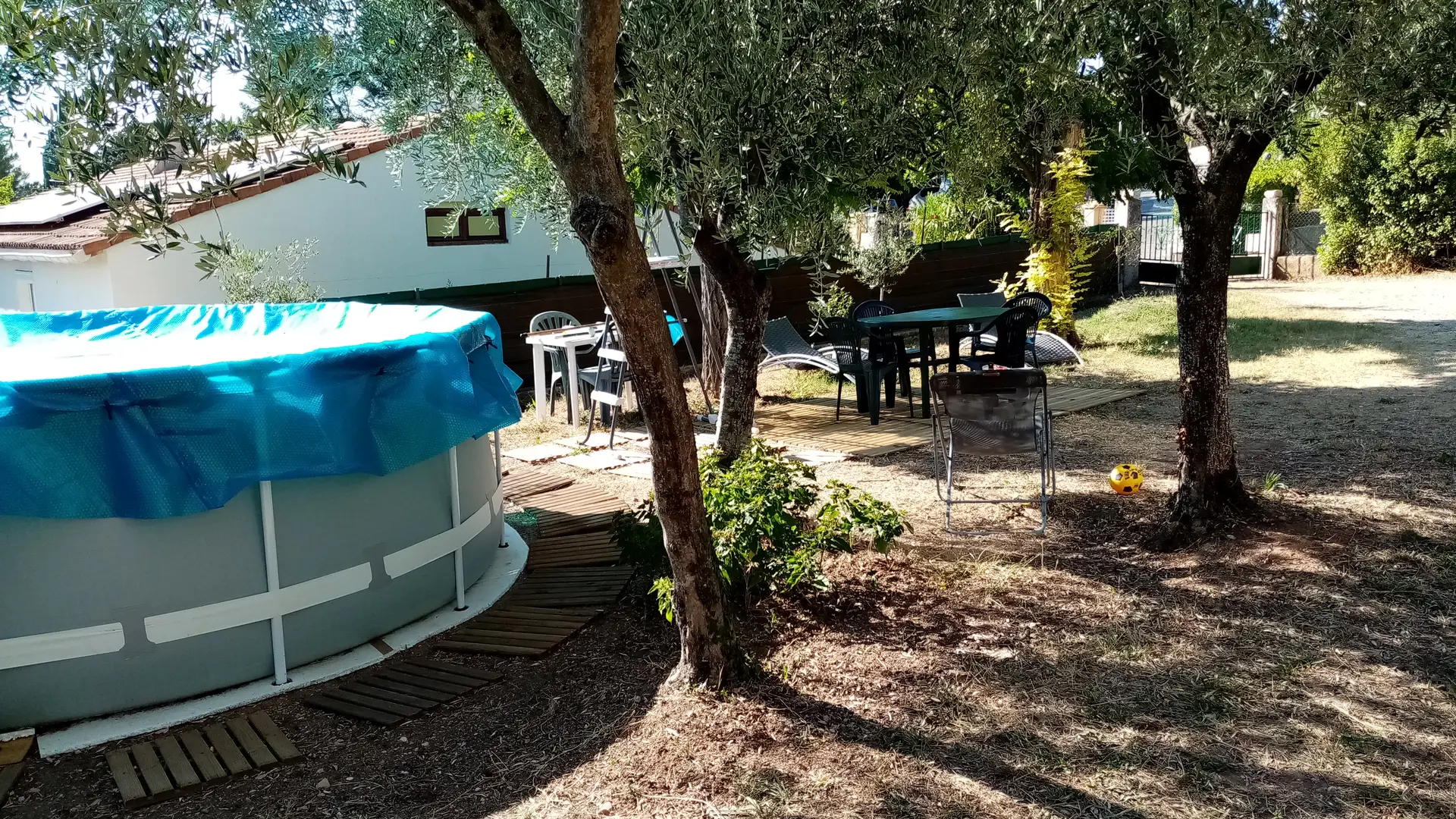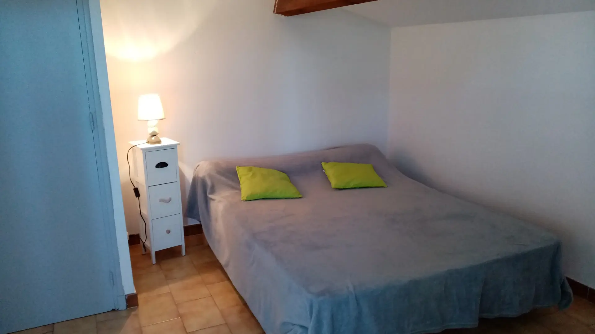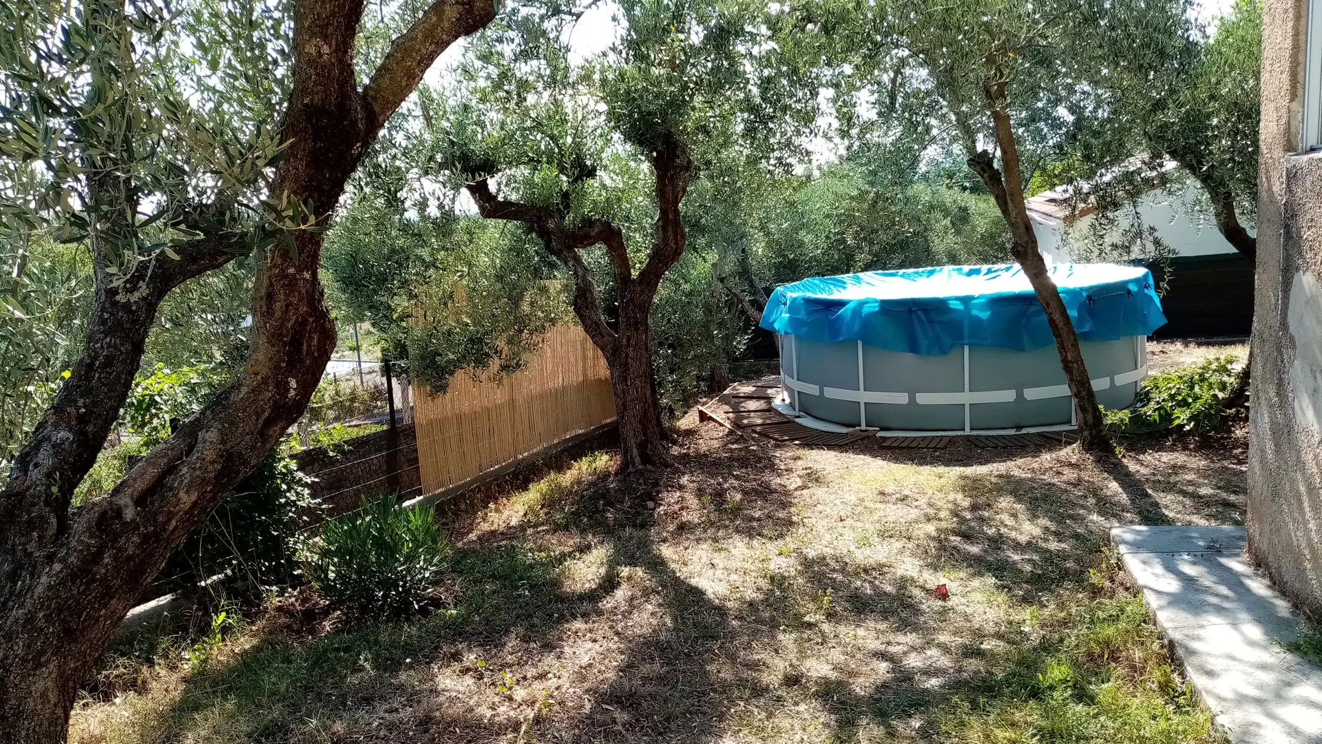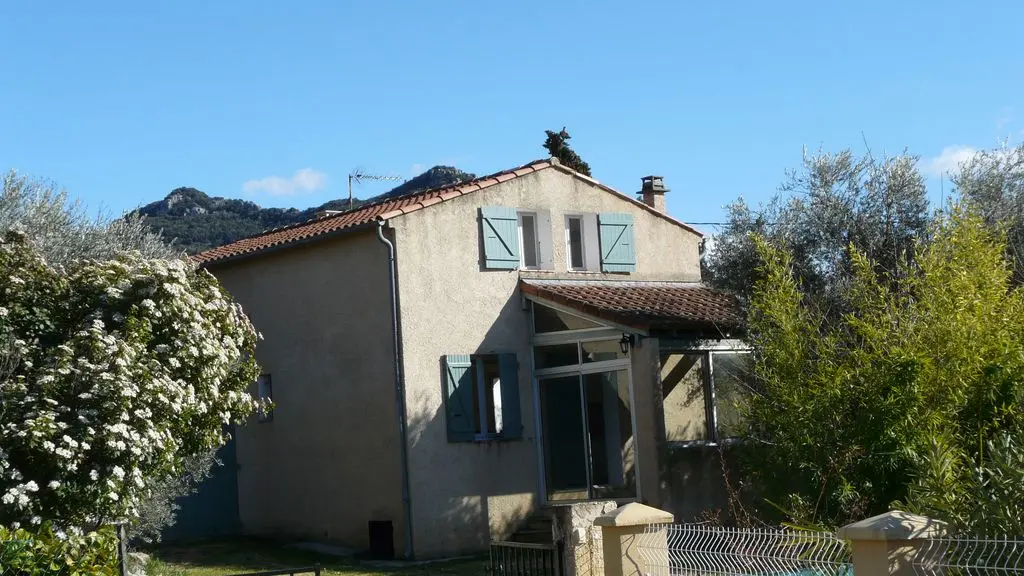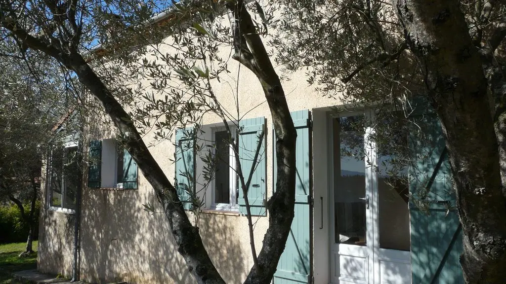 Petite villa située dans un jardin clos de 700m² planté d'oliviers à l'entrée du village avec très belle vue sur les collines environnantes.