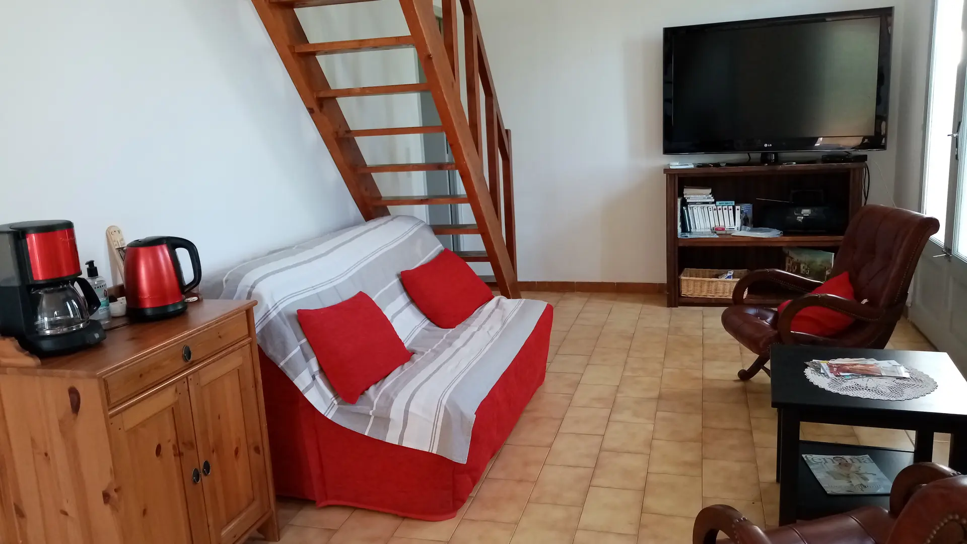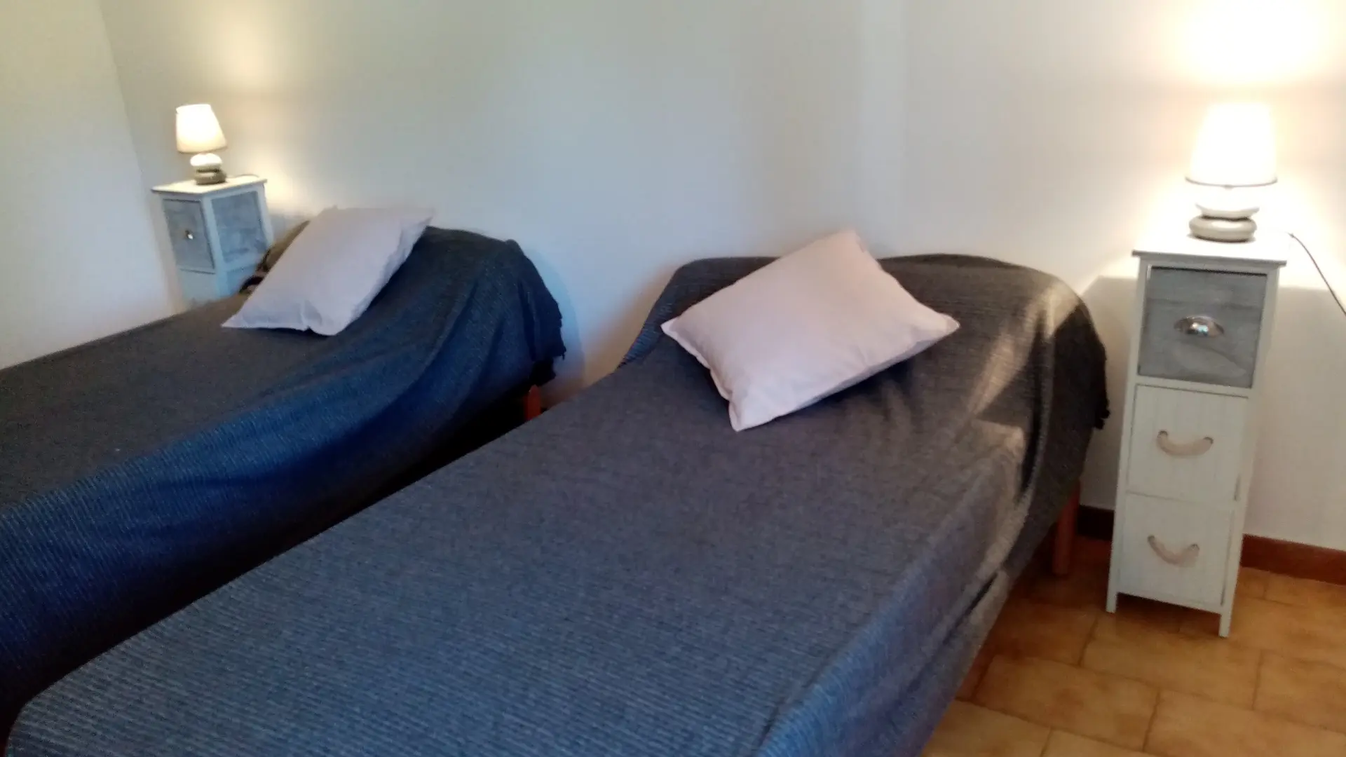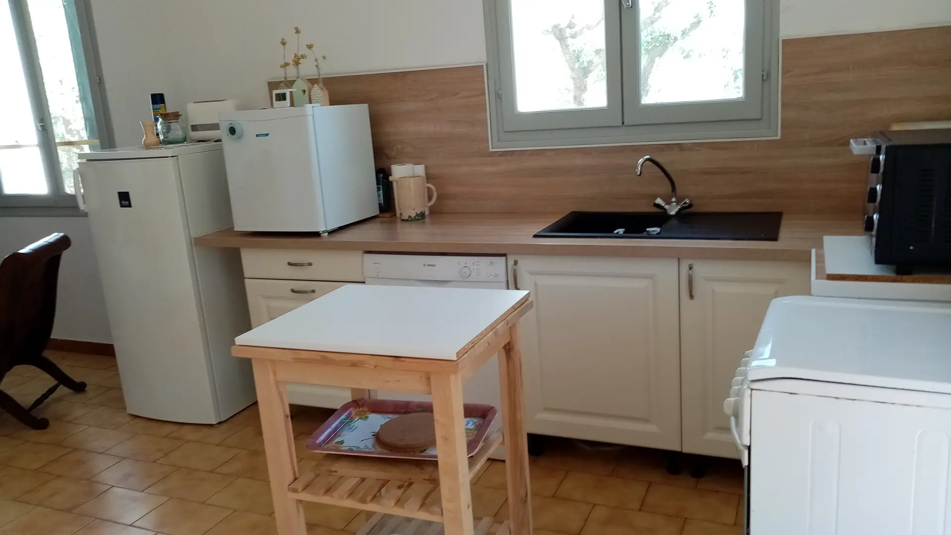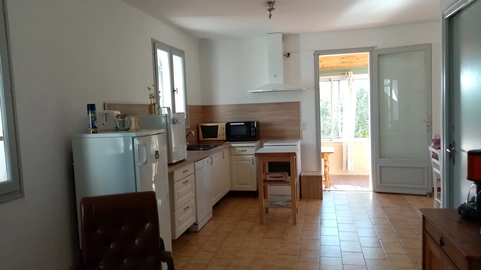 Petite villa située dans un jardin clos de 700m² planté d'oliviers à l'entrée du village avec très belle vue sur les collines environnantes.