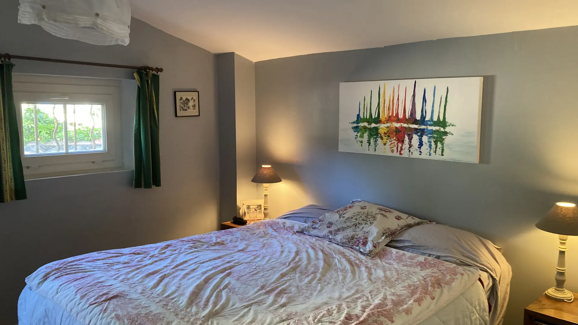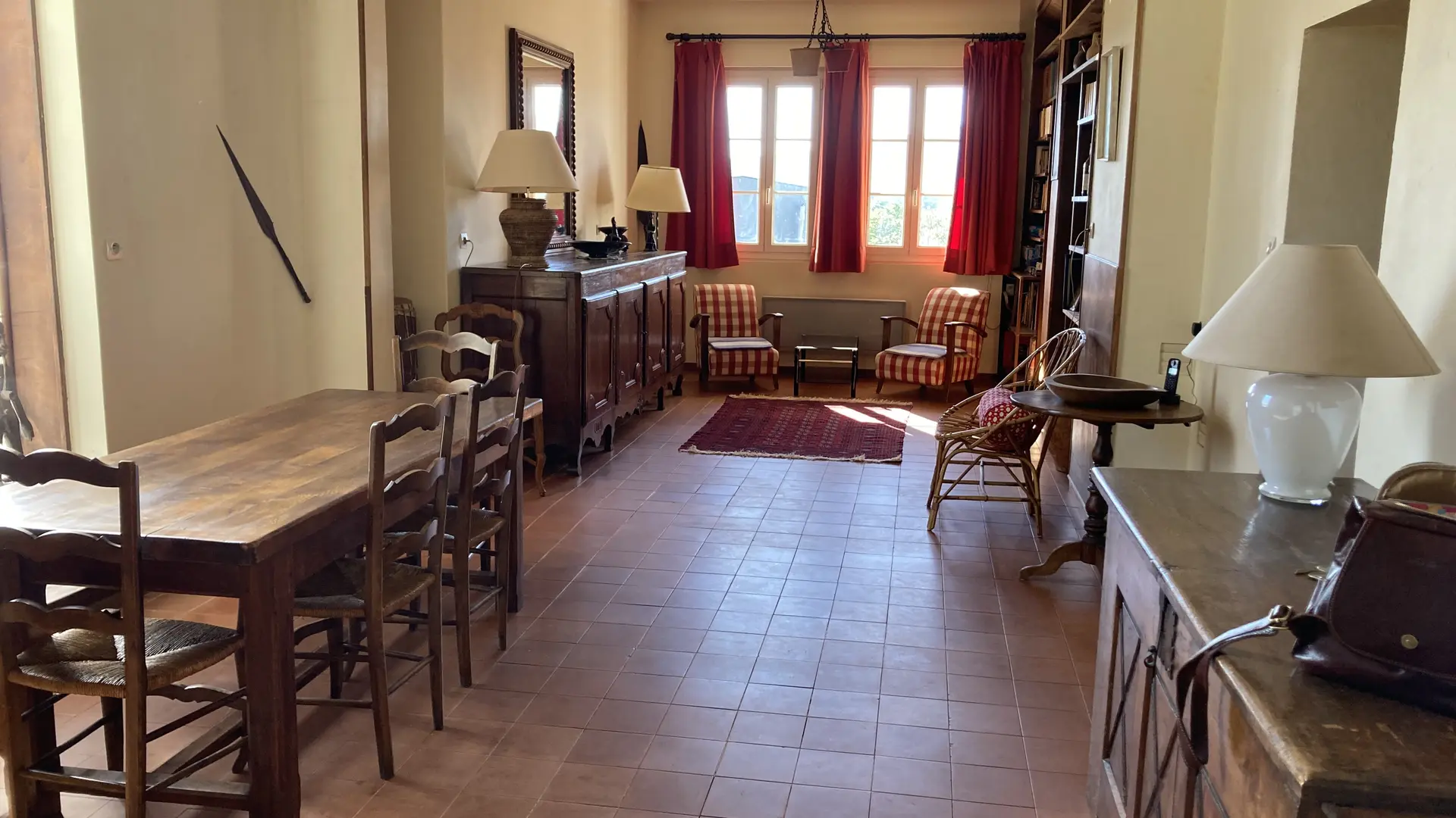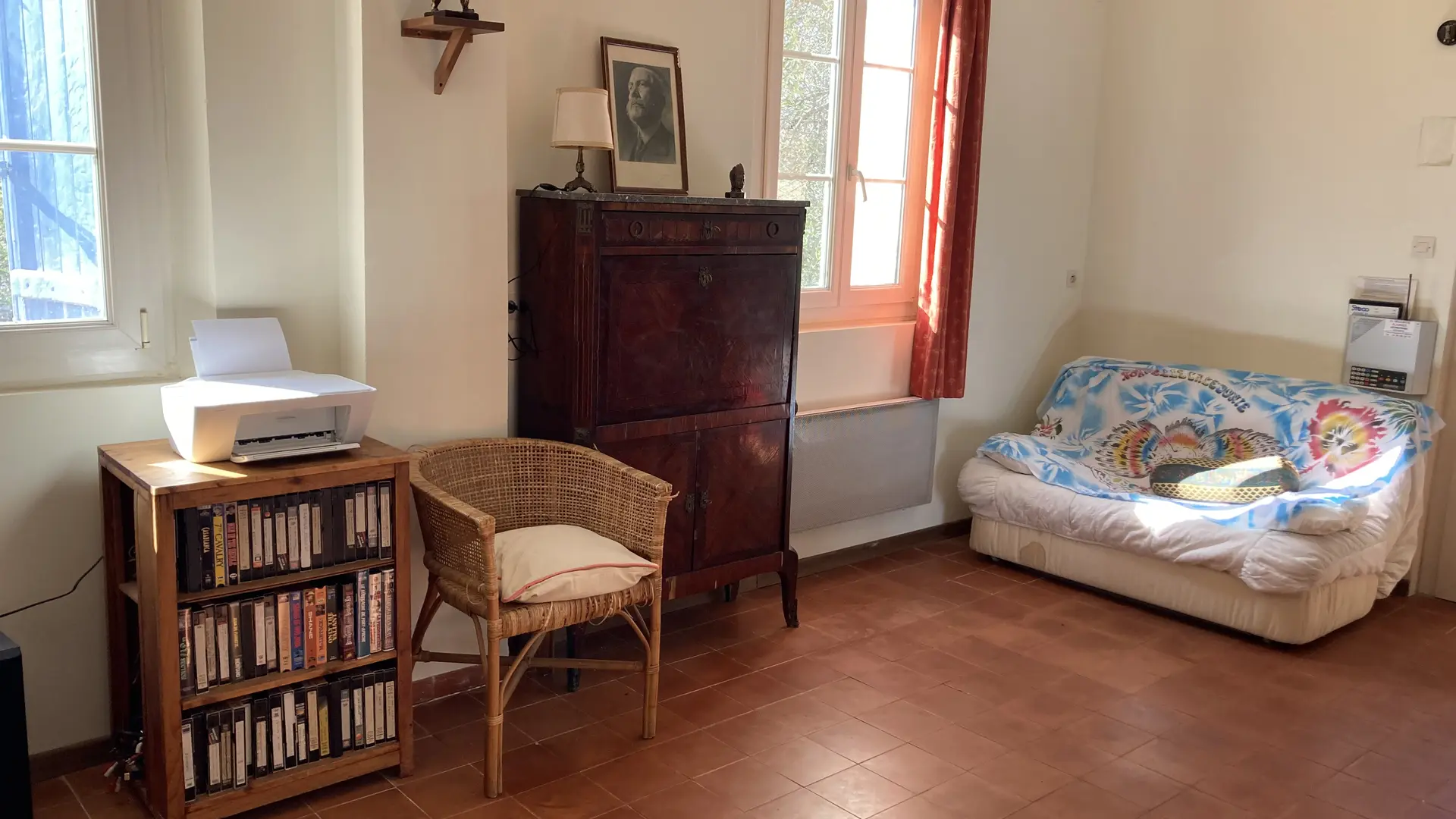 Maison indépendante de plain-pied situé à la campagne avec un jardin clôturé de 800m². Pièces avec grands volumes, meubles anciens et rustiques, intérieur relativement frais l'été. Maison pleine d'atmosphère.