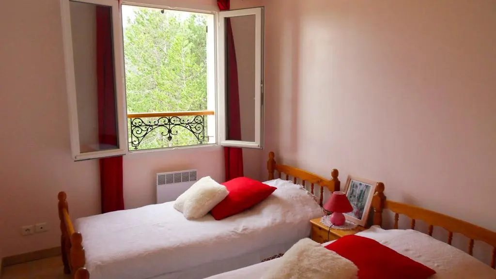Dans le Parc naturel régional du Verdon, aux abords du village, maison indépendante comprenant le gîte et le logement secondaire de la propriétaire sur un grand terrain clos avec portail, jardin, terrasse et pergola privatifs avec belle vue.