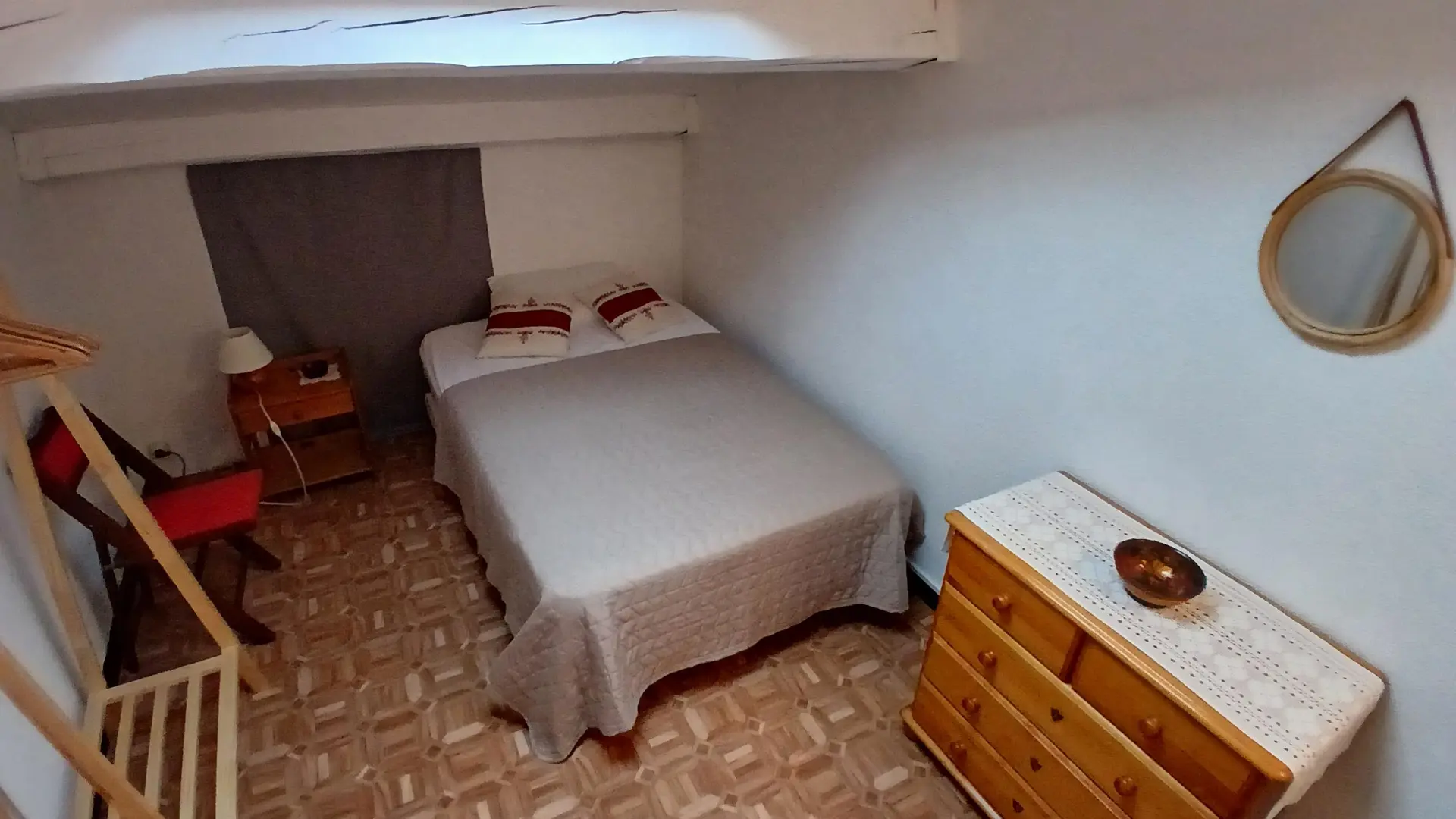 A l'étage : salon lecture avec couchage possible, WC indépendant.
