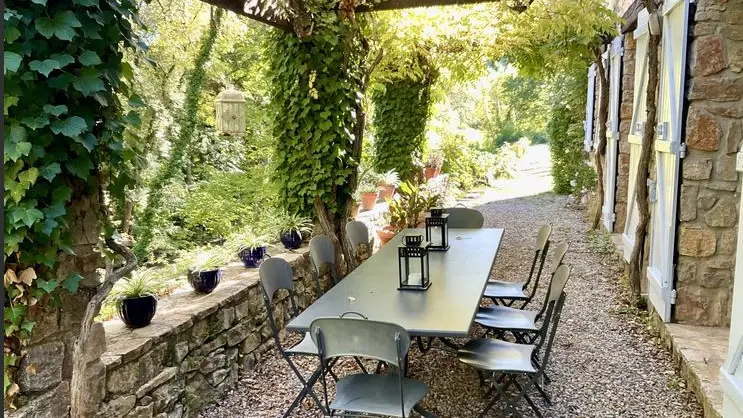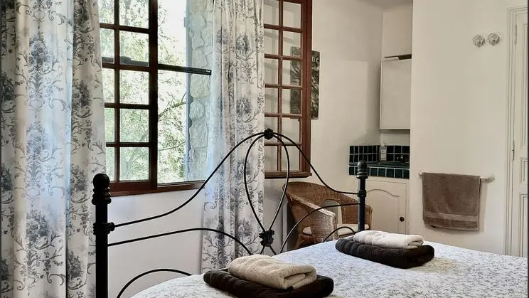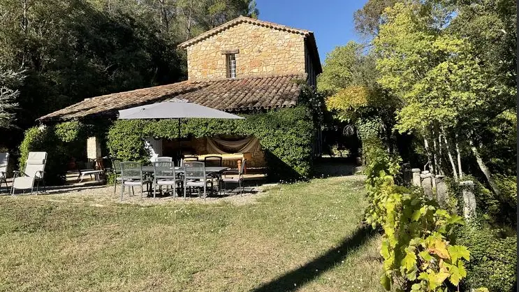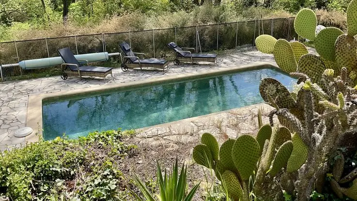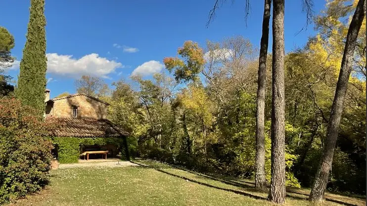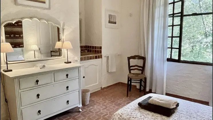 Spacieuse maison de campagne en Provence de 142 m² plain-pied avec piscine, terrasse et un vaste jardin de 8 300 m². Propriété le long de la rivière la Bresque. Prêt possible de 4 VTT. Animaux (chien et chat) admis sous conditions.