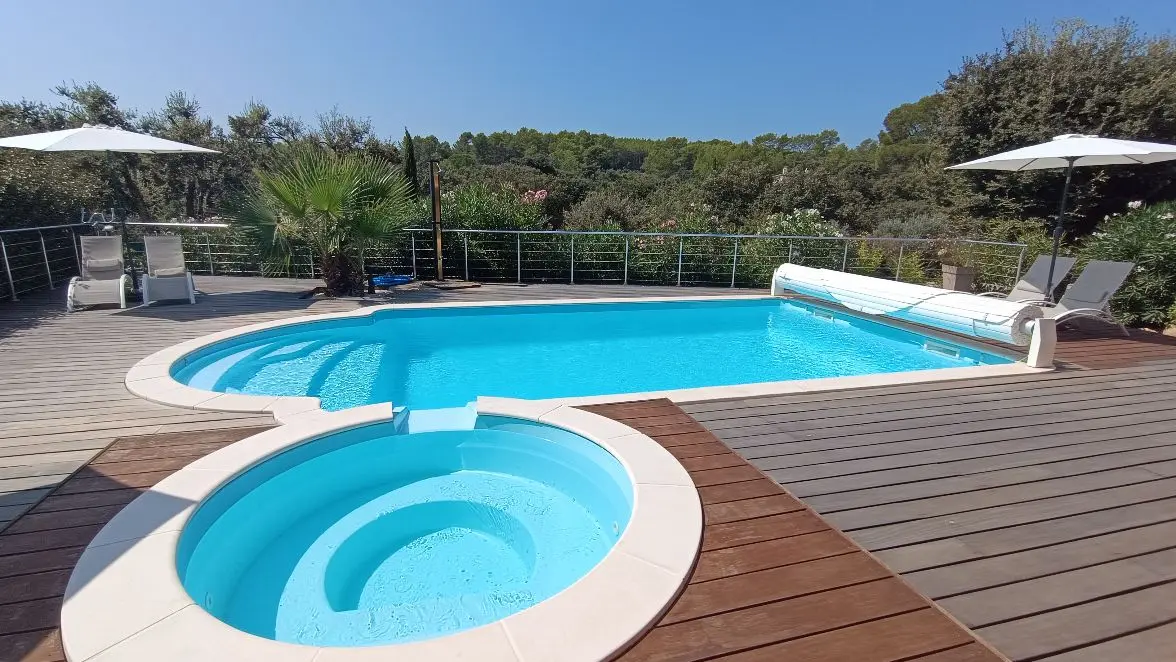 à laver). Il y a également une grande terrasse, avec son store banne électrique et sa plancha. La propriété est ombragée et complètement clôturée. Ce gîte est non fumeur. Une nouvelle piscine privative de 32m², un terrain de boules, une table de ping-pong, une balançoire et deux hamac sont à la disposition des loueurs. Possibilité de louer les draps et serviettes de bain.