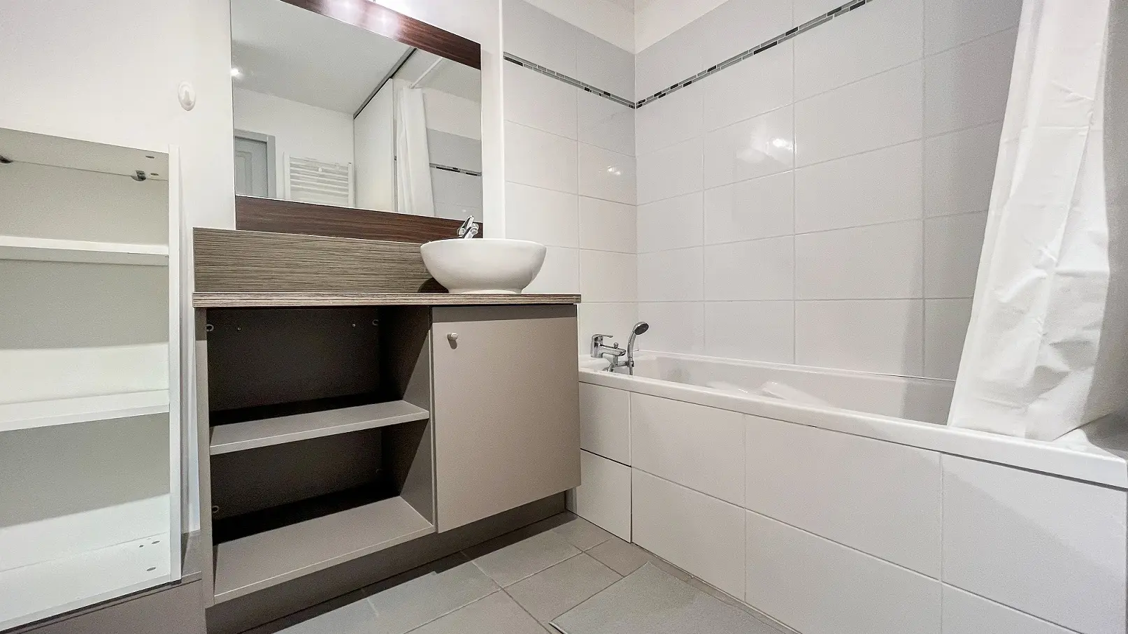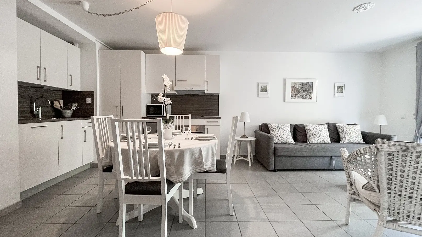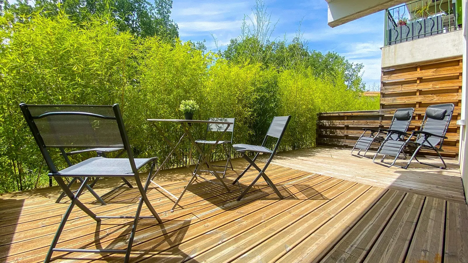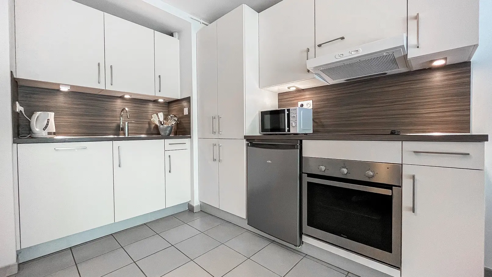 Appartement T2 de 44m2 dans résidence, entièrement équipé, au RDC avec terrasse de 20 m2, sans vis à vis, avec garage privé. Piscine de la résidence. A deux pas des thermes de Gréoux. Parfait pour curistes.