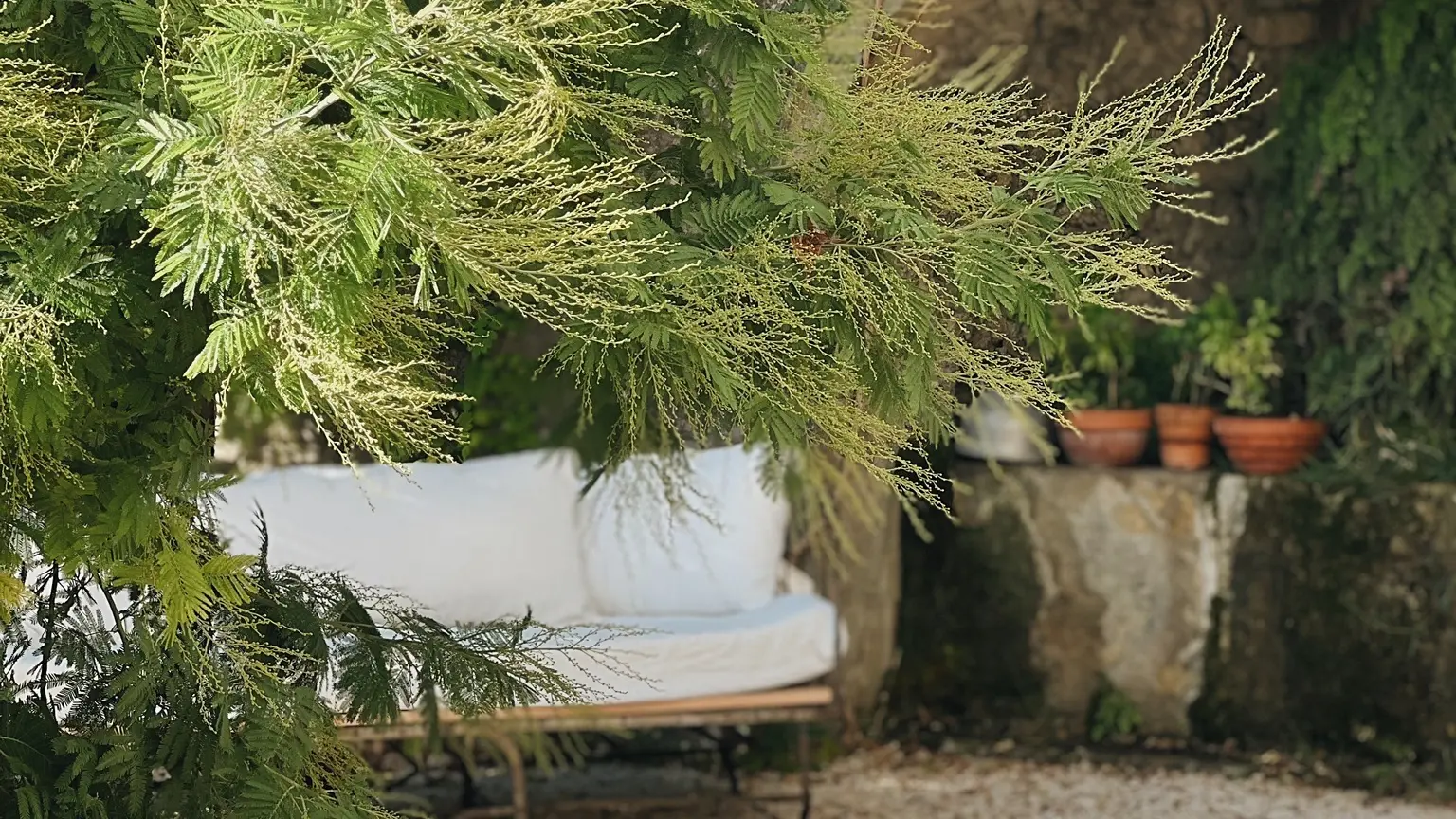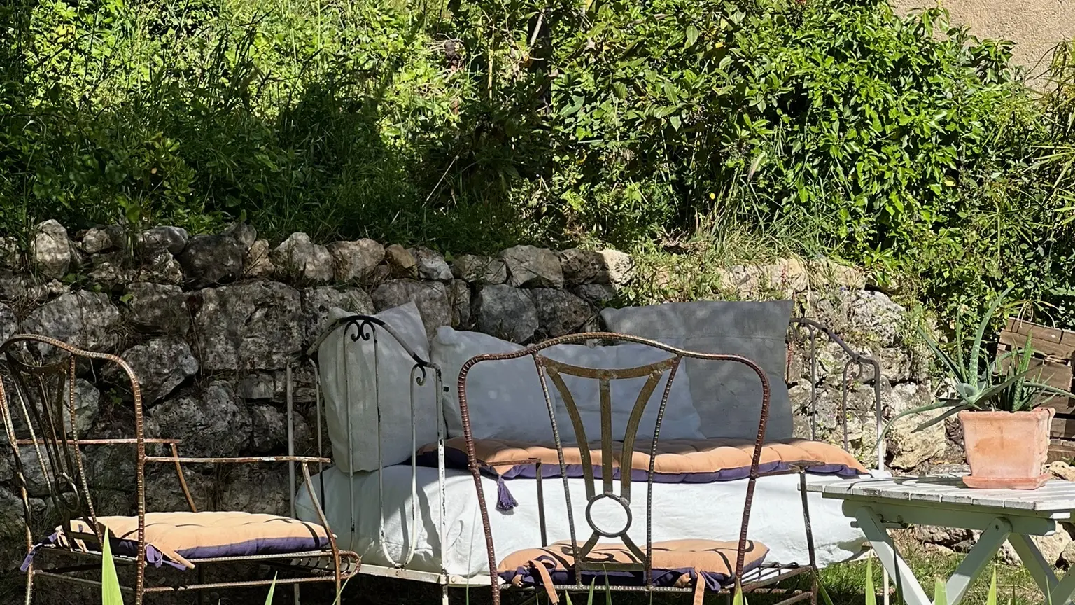 Le Jardin d’Hiver, une suite indépendante baignée de lumière, avec kitchenette et entrée privative par le jardin. Ancienne galerie vitrée du XIX     ᵉ siècle, bordée d’un tilleul centenaire, elle retrouve aujourd’hui sa beauté à travers ses multiples fenêtres ouvertes sur le village et la nature. Une suite poétique et singulière, pensée comme une parenthèse totalement indépendante en Provence.