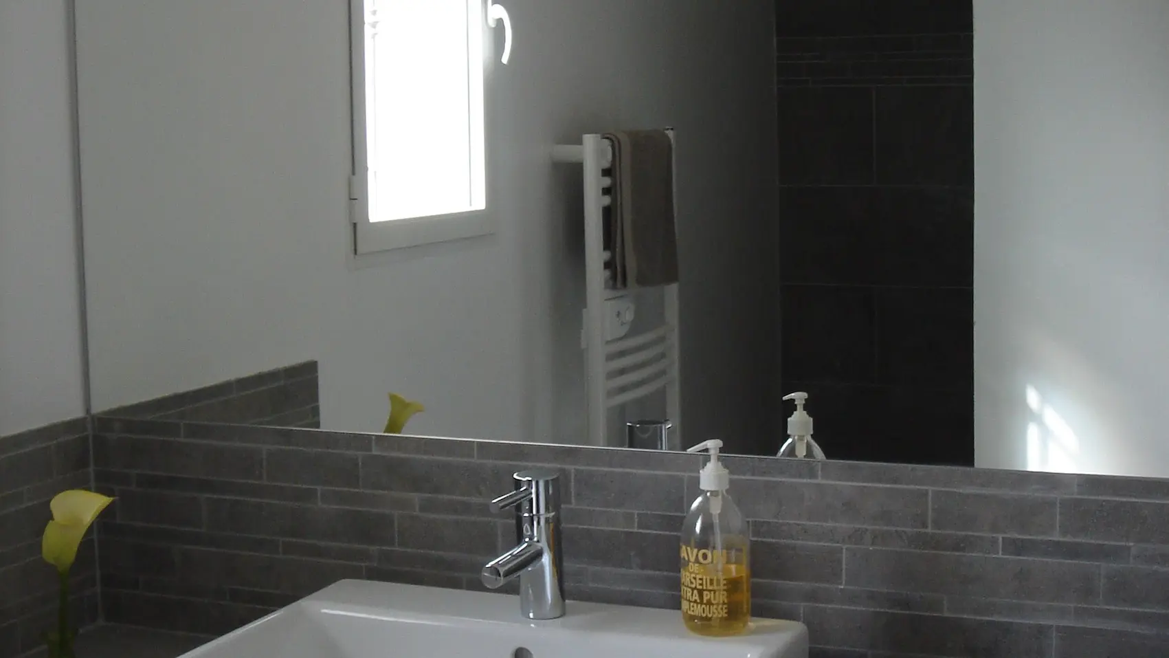 Salle d'eau avec grande douche italienne. Wc indépendant.