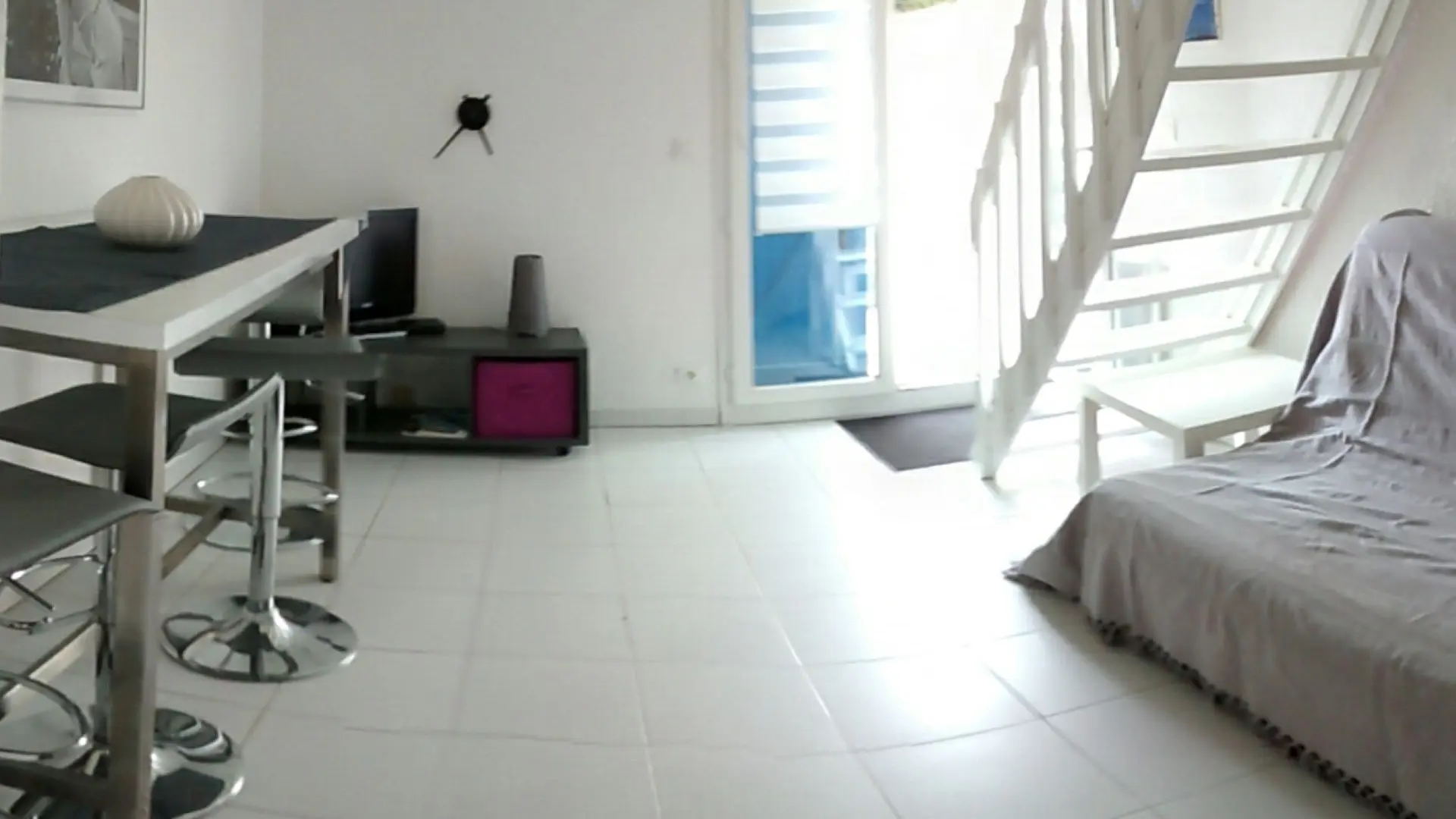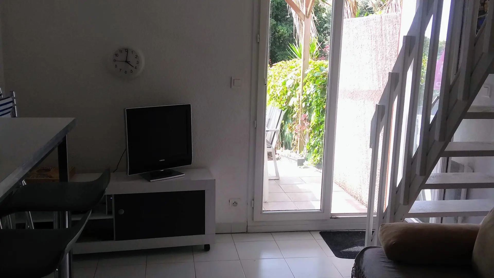 - Séjour avec TV écran plat et canapé convertible deux couchages, accès à la terrasse.