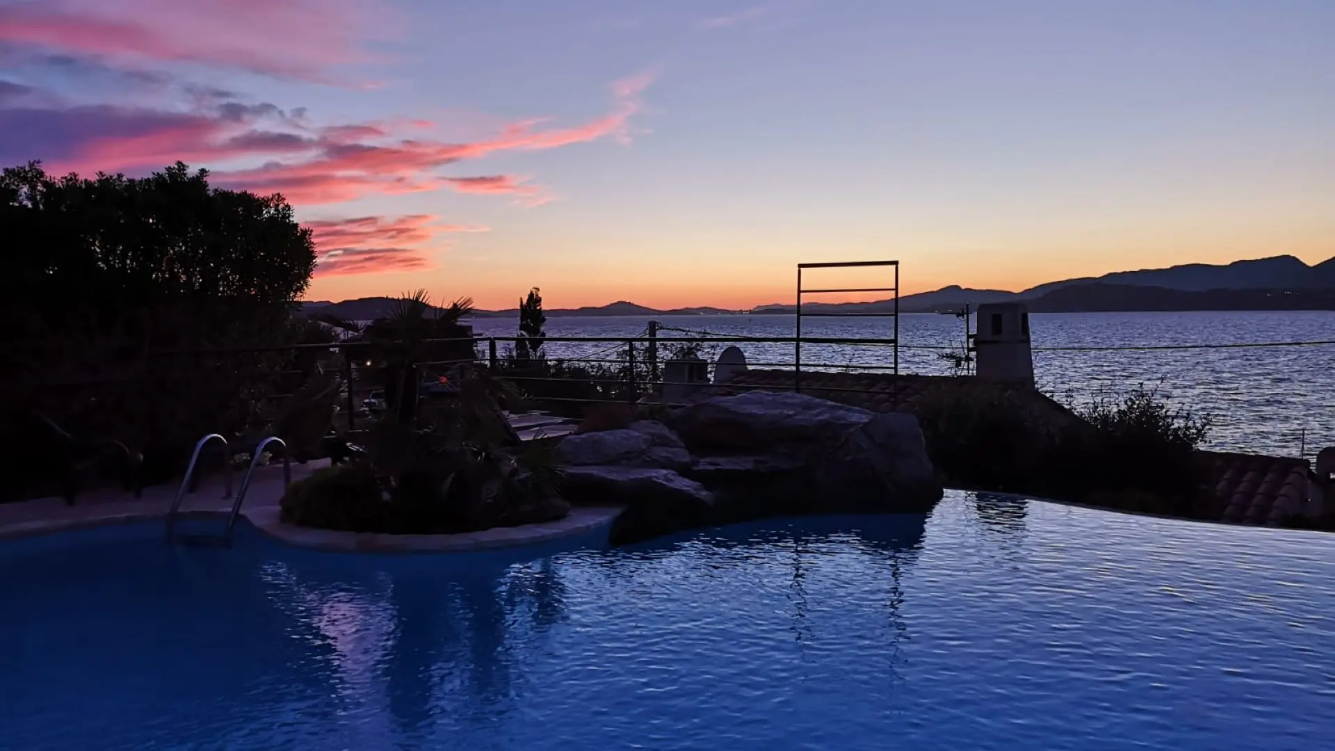 Une belle terrasse avec chaises longues, un espace repas et cuisine avec vue plongeante sur la mer et même une piscine chauffée privative vous donnera rendez-vous afin d'admirer chaque soir un coucher de soleil digne des plus belles cartes postales.