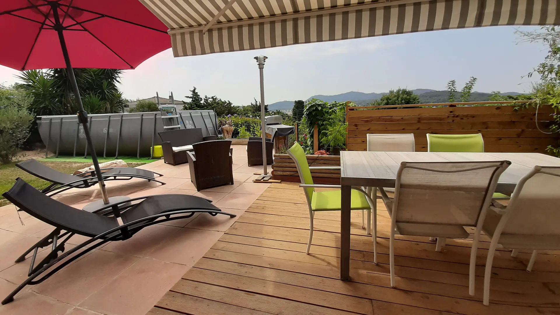 "La Bonne Étoile" : vue panoramique à 180°, accès aisé, calme et confort. Belle villa avec terrain et piscine dans un cadre verdoyant au calme. Vue panoramique sur le Cap Sicié.