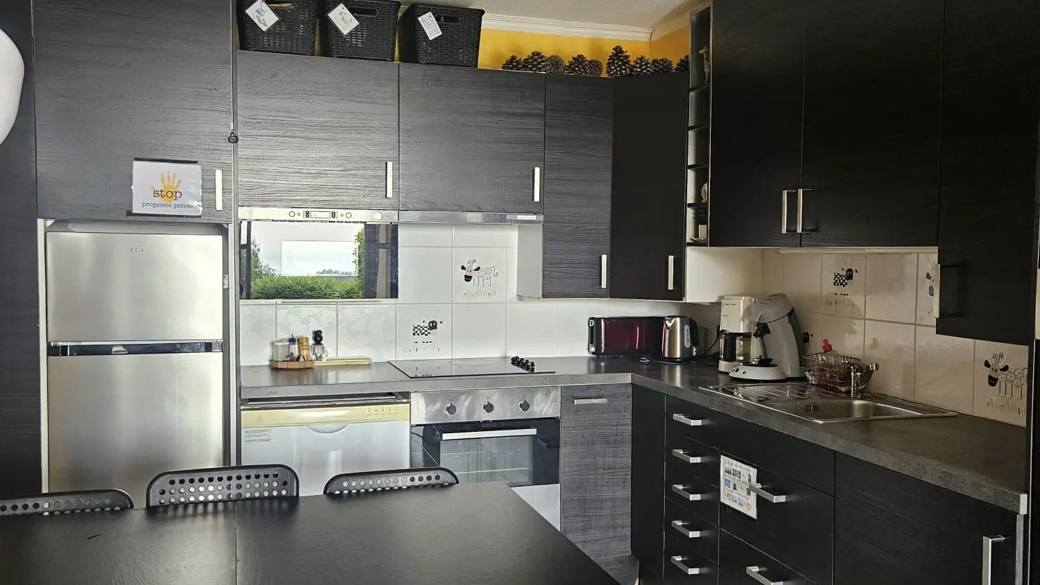 Cuisine équipée avec four, micro-ondes, barbecue électrique