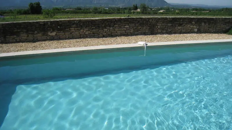 Piscine privée non chauffée ,sécurisée par un muret et portail.