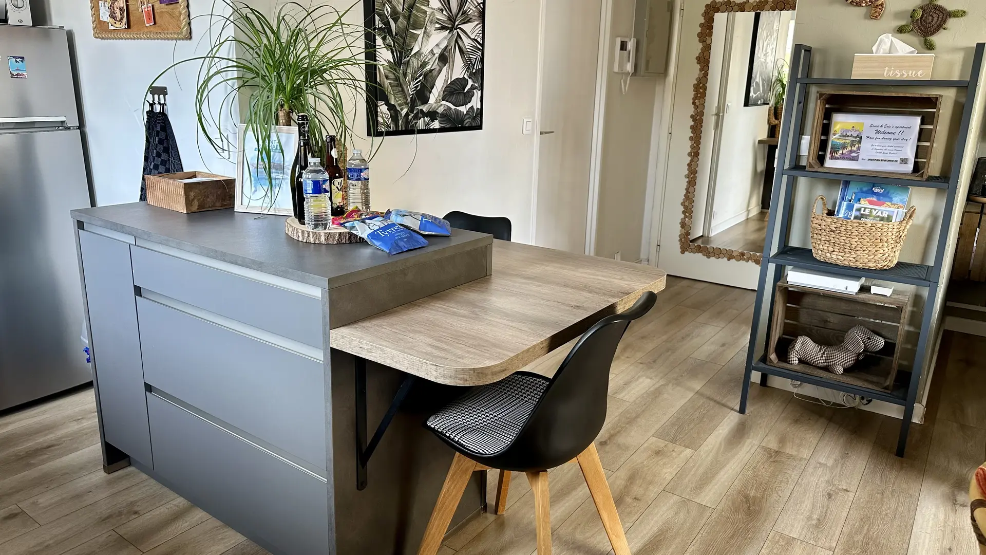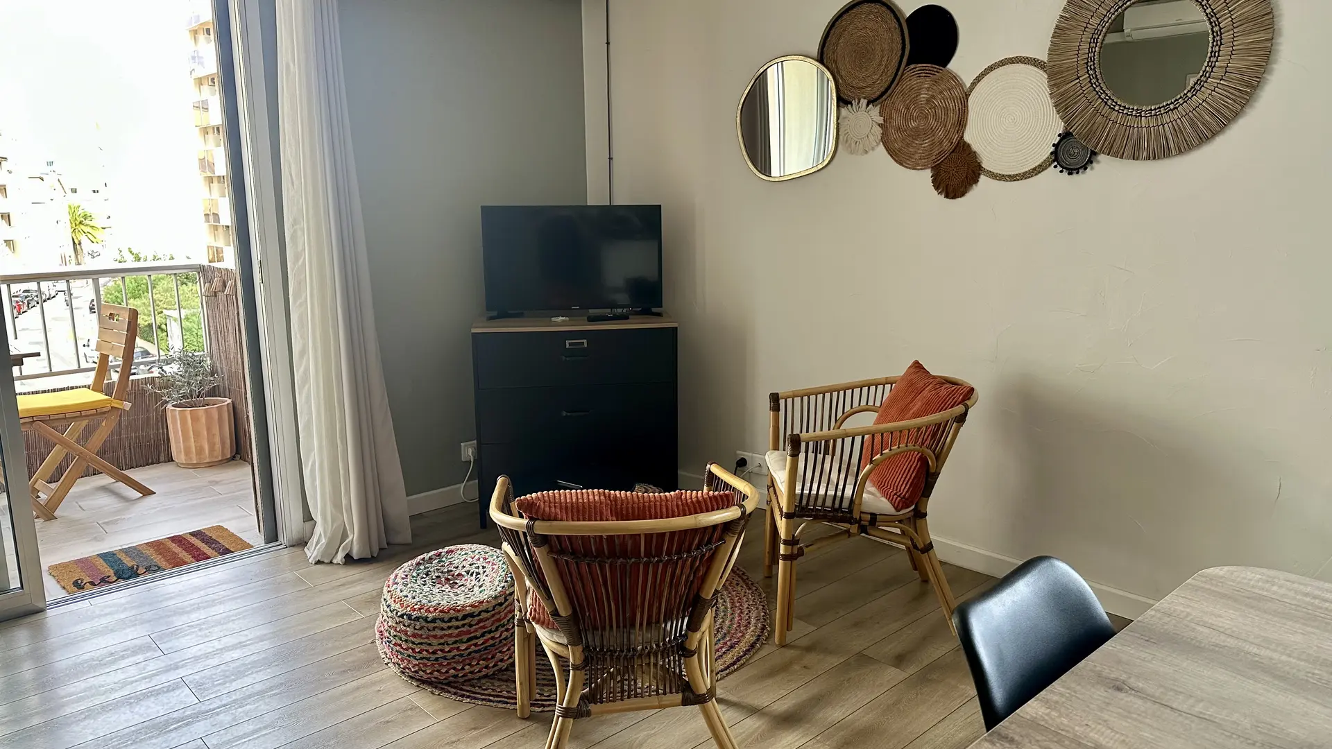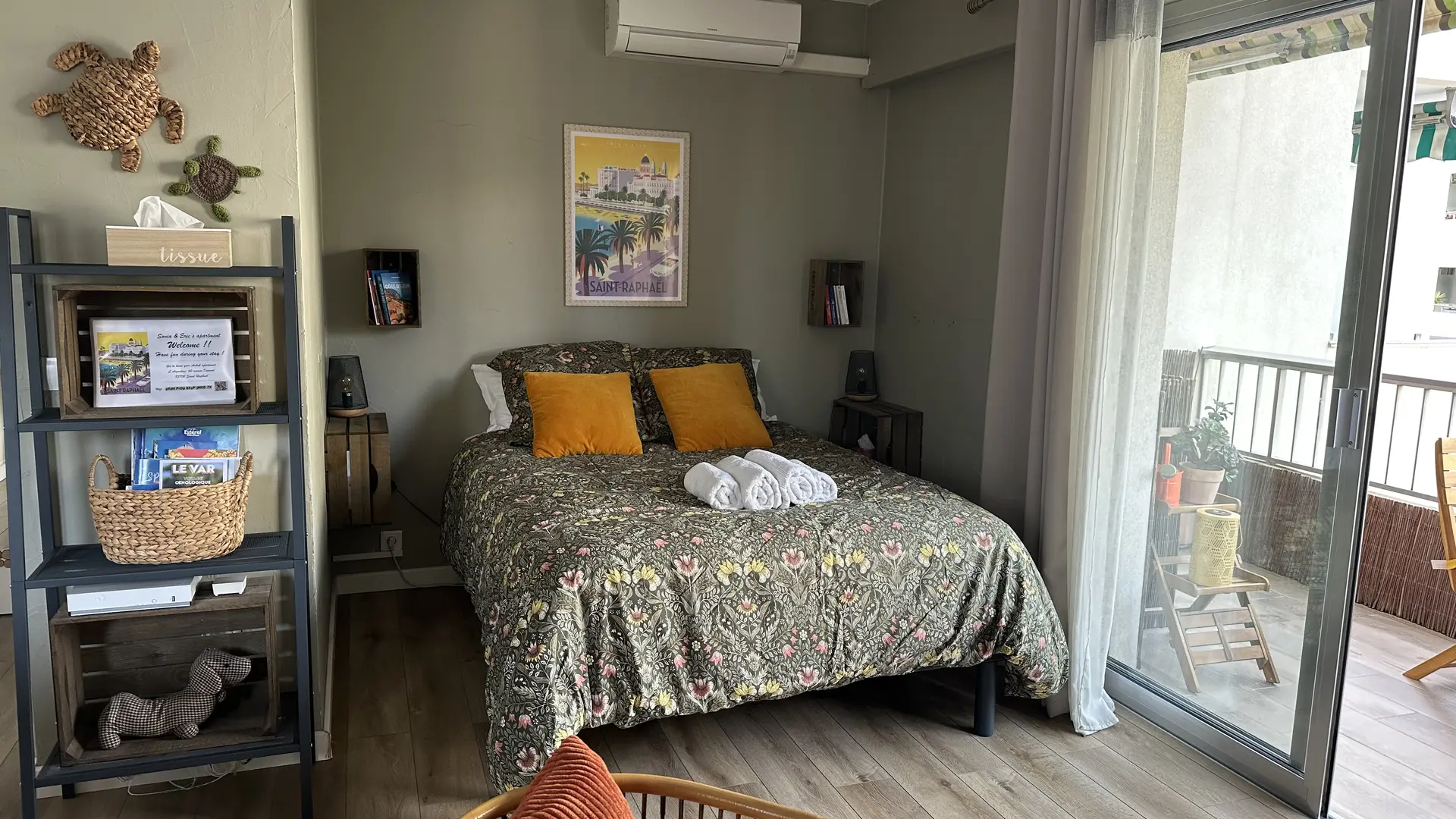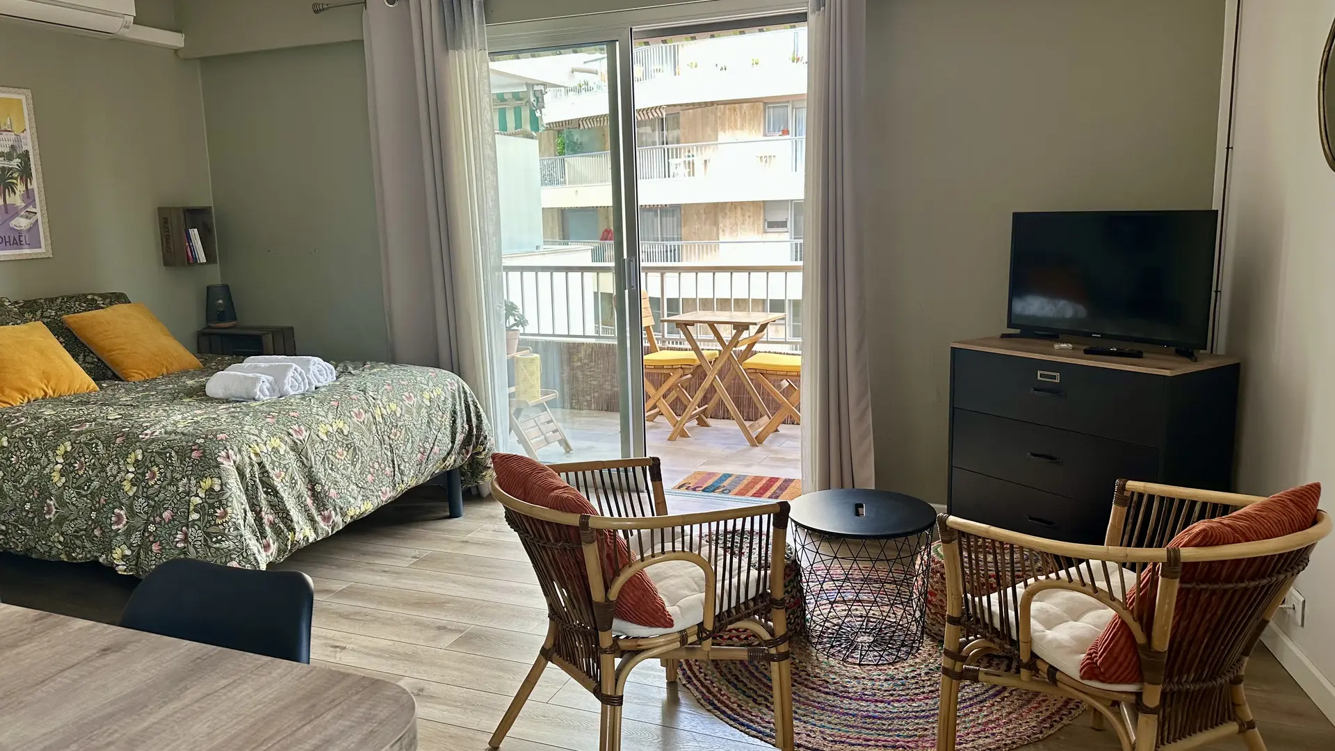 Agréable studio de 28m² climatisé avec vue mer de côté depuis la terrasse. Rénové avec goût et composé d’une entrée avec placard, d’un séjour avec cuisine américaine ouvrant sur une terrasse, d’une salle d’eau avec WC. Avec une place de parking en sous-sol et une cave avec à disposition des chaises de plage, un parasol et 2 VTT sur demande à l’avance.