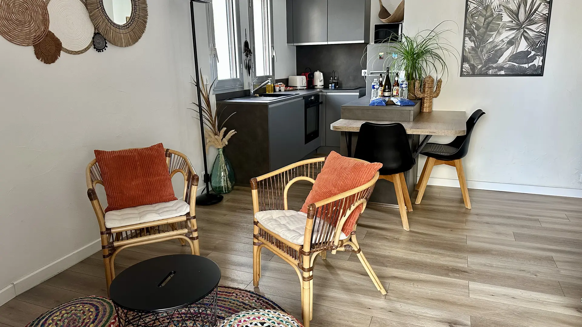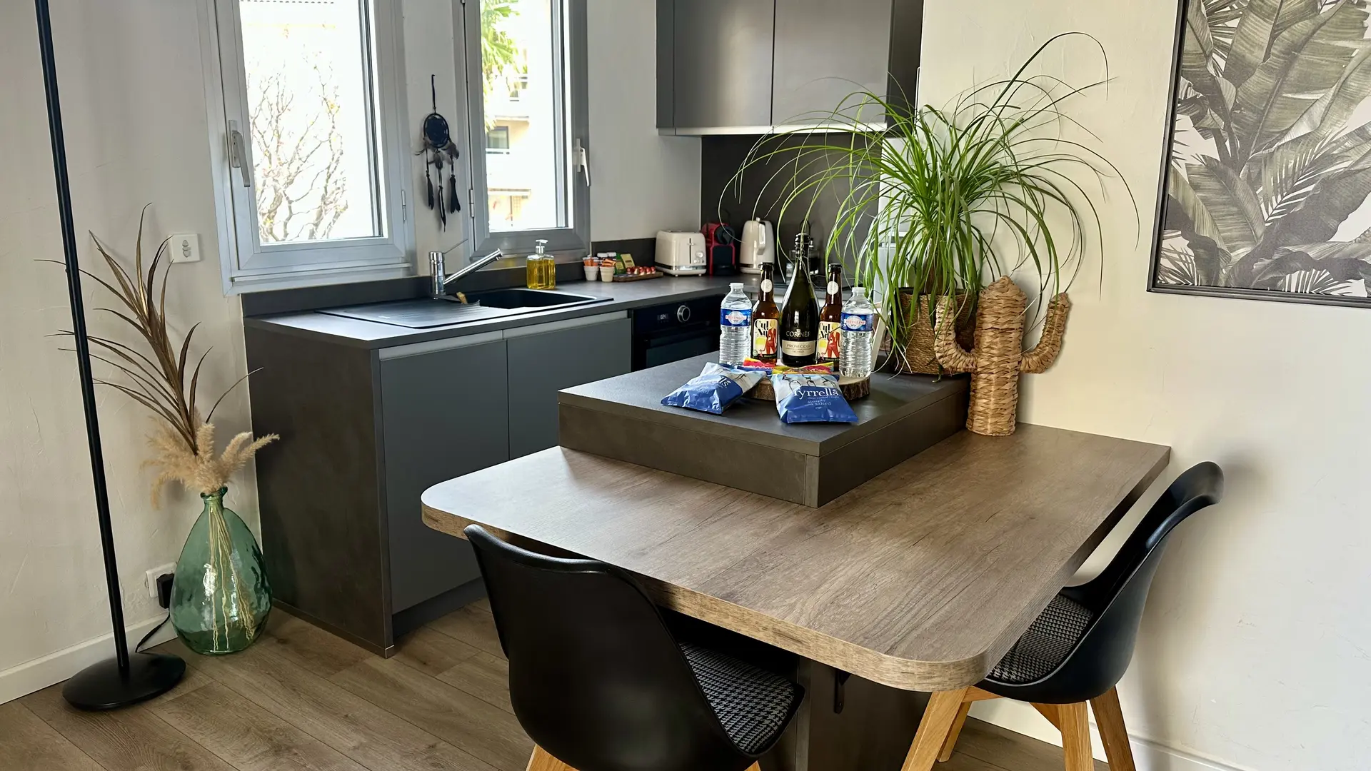 Dans résidence située face aux plages (triangle d’or) à deux pas du centre-ville, des commerces et de la gare à pied (6minutes).