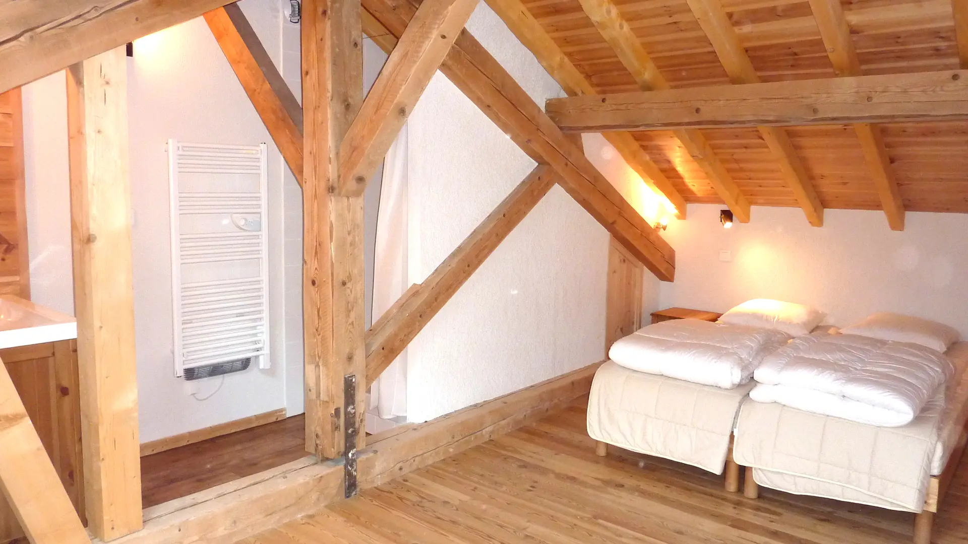 - une chambre sous combles avec 2 lits simples (80x200) jumelables bord à bord