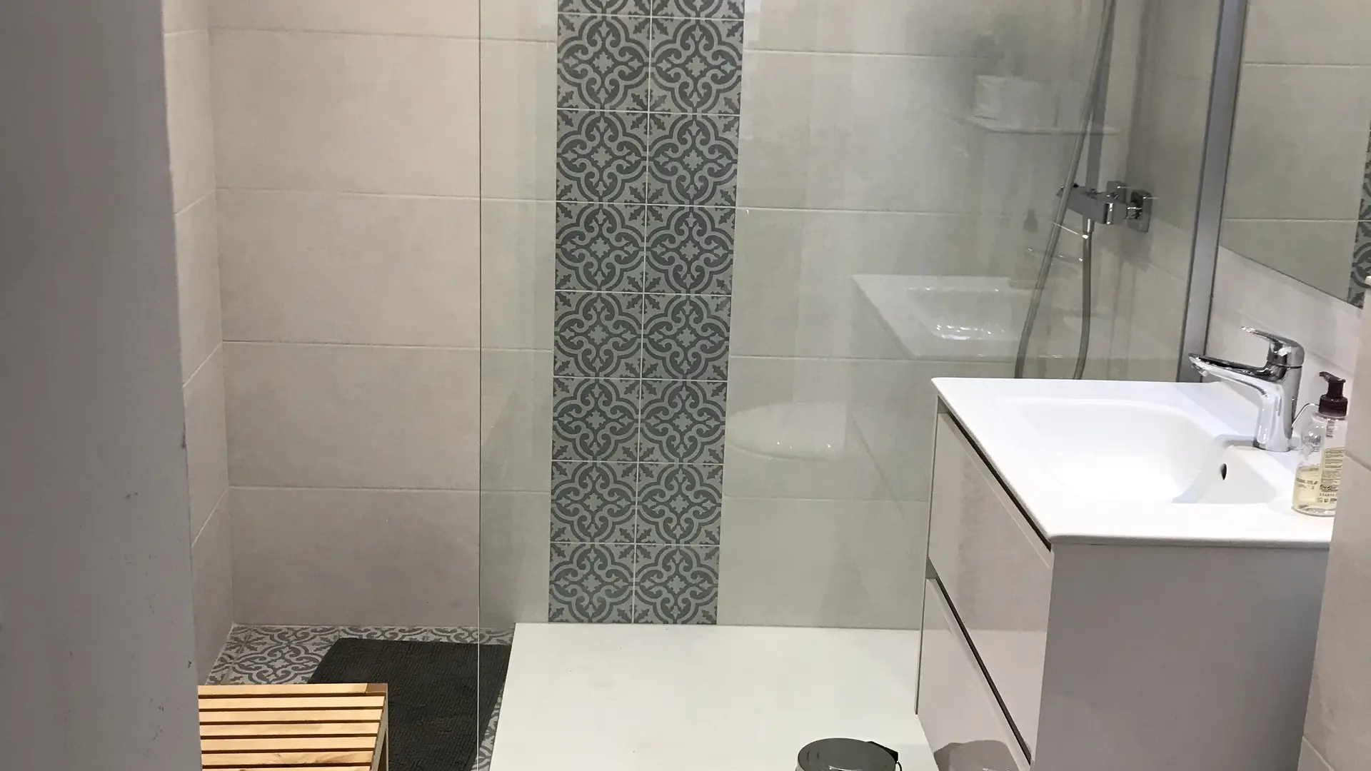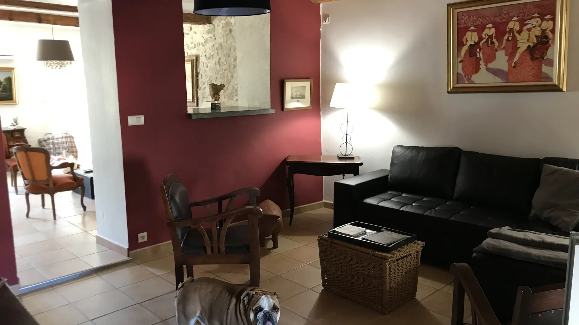 Au premier étage un double salon climatisé dont un canapé lit deux place et un bureau.