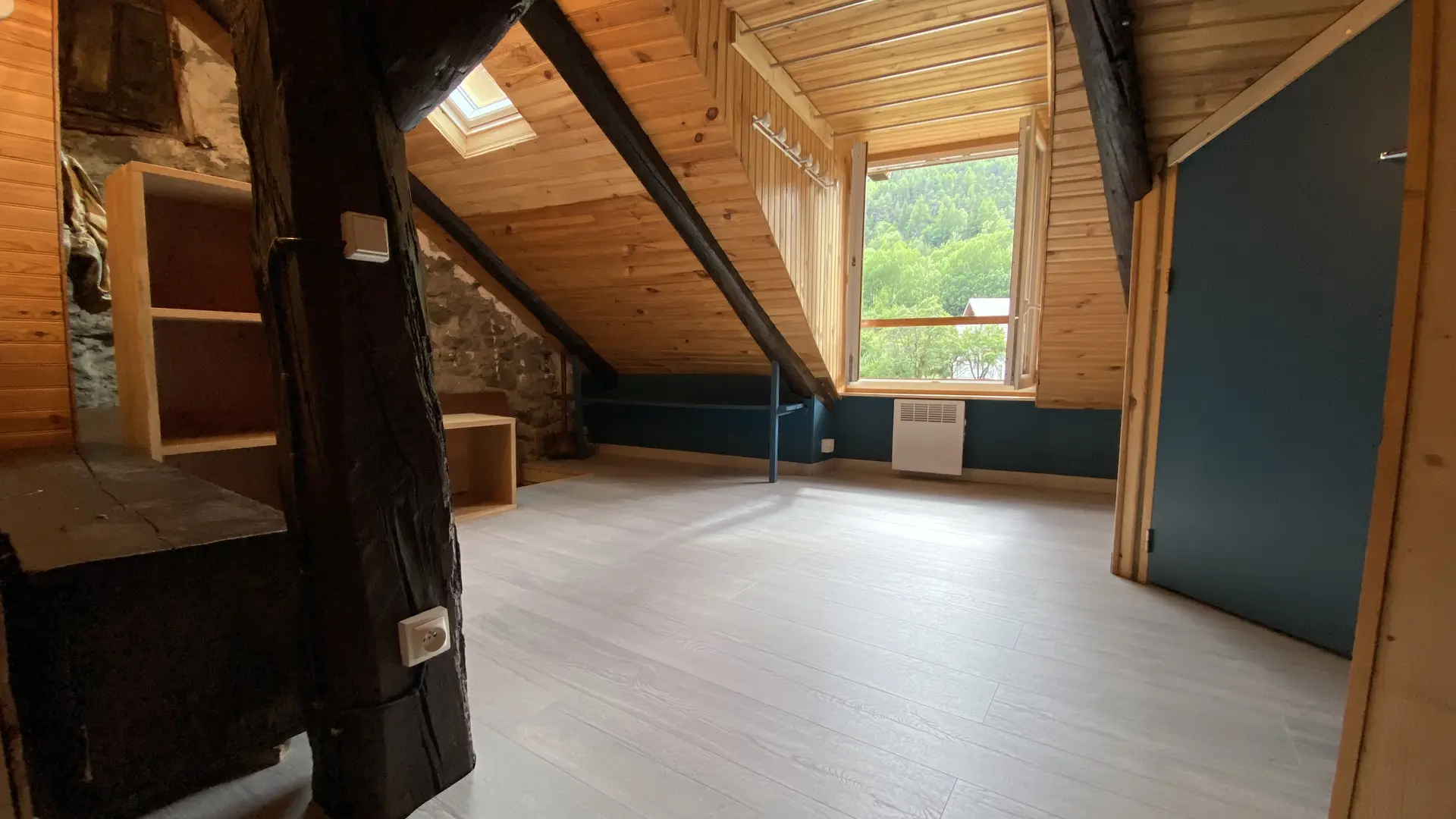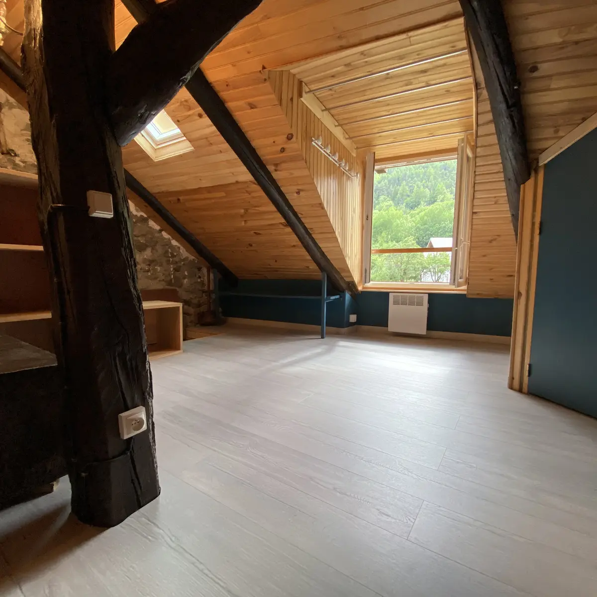 Appartement comprenant trois chambres, une petite salle de bain, deux WC et deux espaces communs, (salon et surface à l’étage) offrent des zones confortables Vous disposerez d’un accès au garage pour vélos, motos, skis, poussette mais pas de voiture (grand parking gratuit à 200m).
