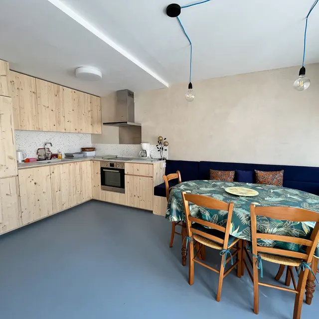 électro-céramique. Grande douche extra-plate, lave-linge, cuisine de compétition.