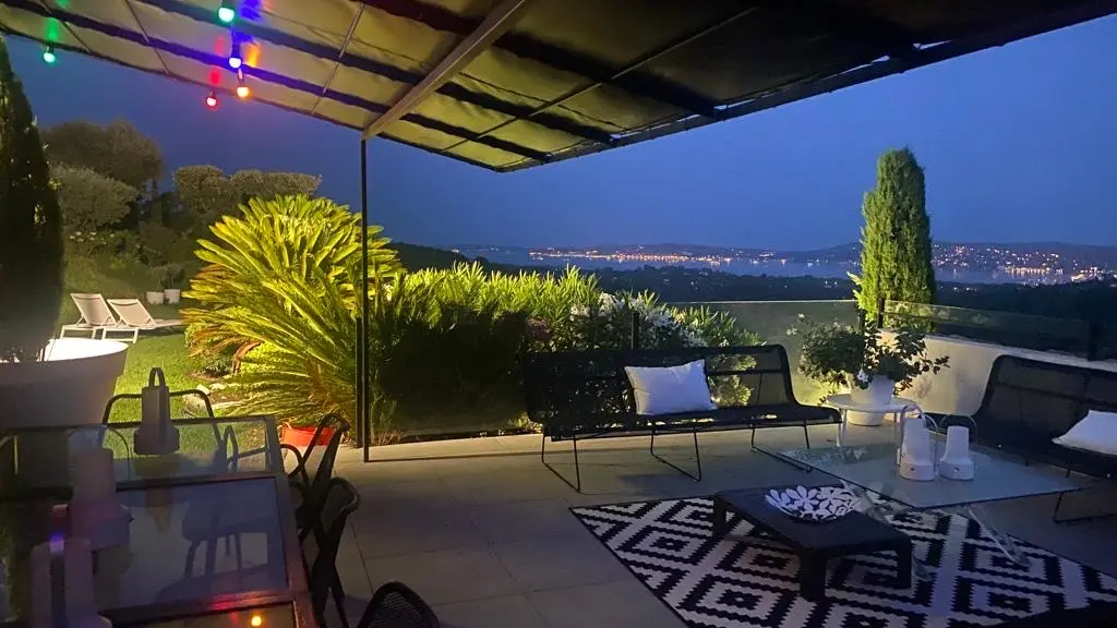 La maison jouit d'une magnifique vue sur le golfe de Saint-Tropez et ce depuis toutes les pièces. La vue est magique la nuit aussi car le golfe est illuminé.
