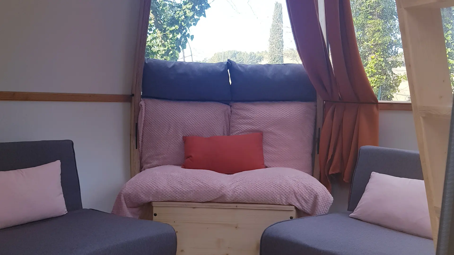 Parmi la nature et le chant des oiseaux dans la Goutte d’ô, dans le tonneau, la pandola ou le Wigwam. Un concept original pour les amoureux de la nature, entouré de vignes et de verdure, nos habitations sont ombragées l’été et ensoleillées l’hiver.