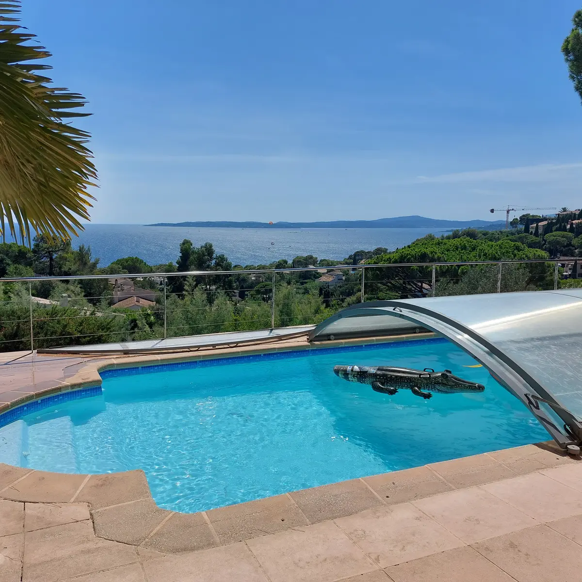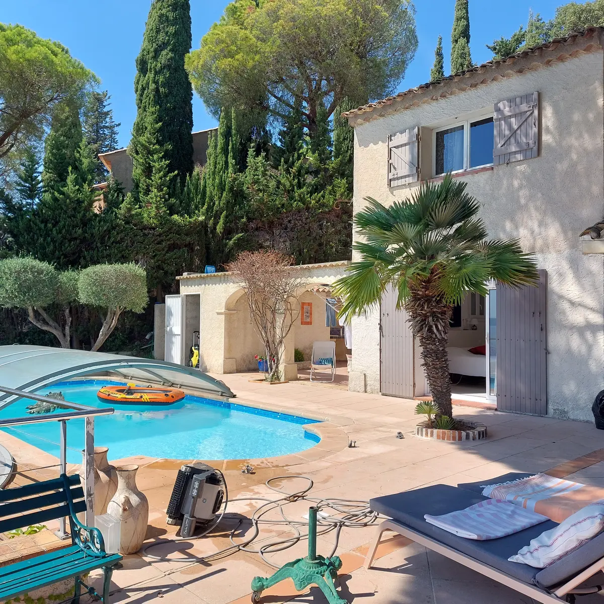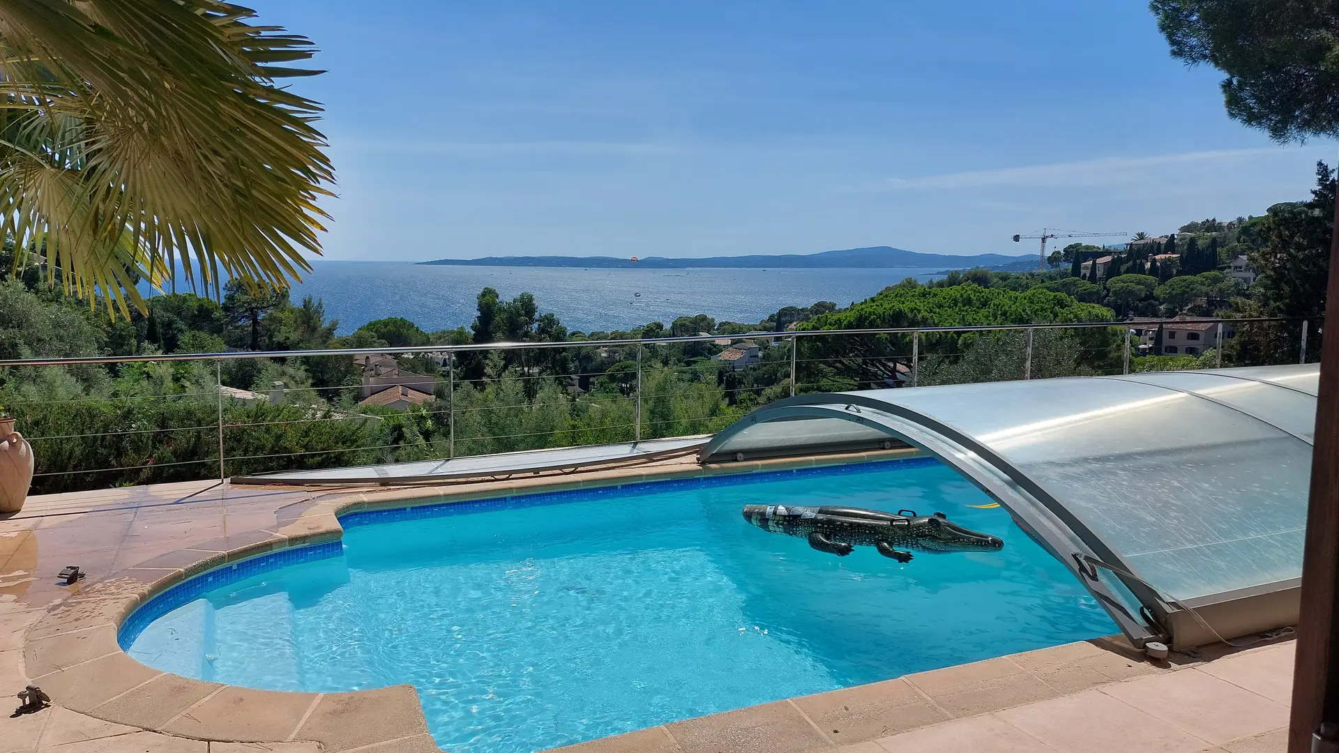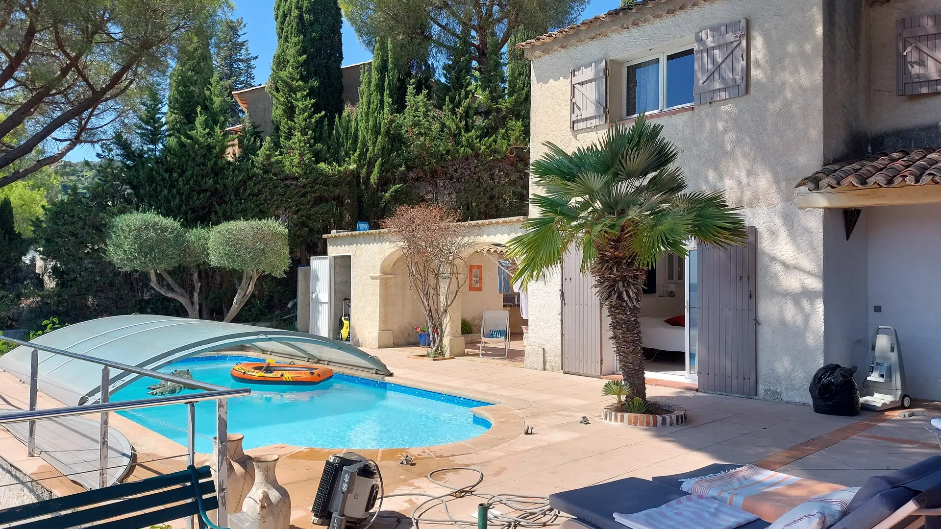 Climatisation dans toutes les pièces louées ! Cette villa boulevard des Nymphes aux Issambres présente une jolie piscine de 9 x 4 sur une belle terrasse vue mer et baie de St Tropez. Cuisine indépendante, grand séjour salle à manger avec cheminée, chambre parentale, chambre avec salle d'eau. A l'étage : chambre 3 avec salle d'eau et toilettes et chambre 4 avec salle d'eau. D’architecture classique provençale, elle sent bon les vacances en famille et la décontraction. Vous apprécierez la très jolie vue sue la baie de St Tropez. TV dans toutes les chambres et wifi.