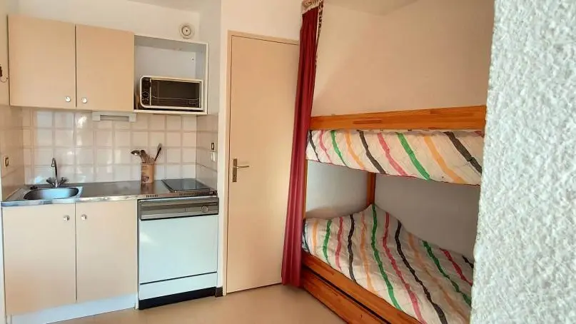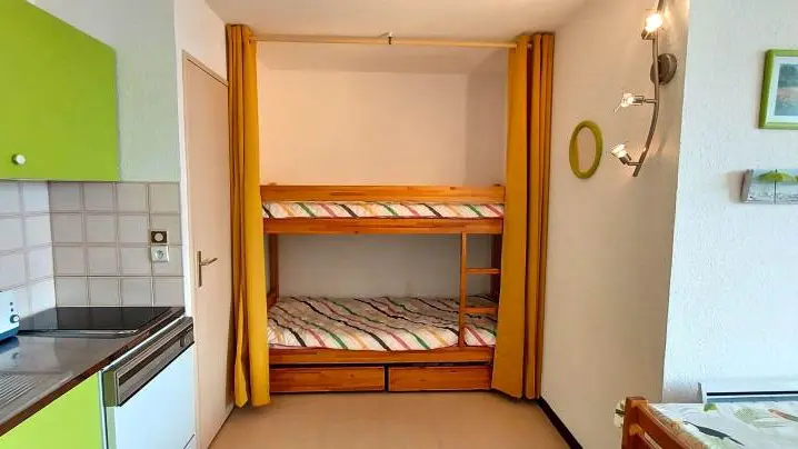 - 1 salon séjour avec canapé lit convertible + coin montagne ouvert avec lits superposés