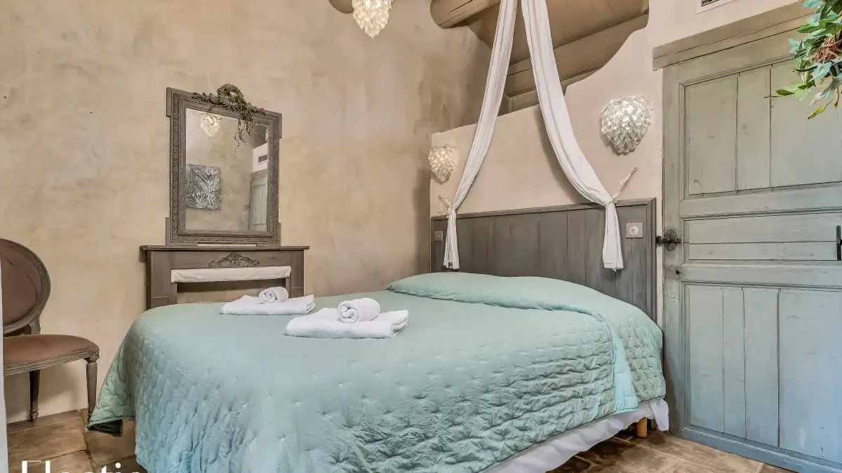 Les extérieurs de la résidence sont magnifiquement aménagés pour vous offrir une expérience authentique de la Provence. Vous y trouverez des espaces ombragés avec pergolas, des rideaux blancs, des platanes et des bancs en pierre pour vous détendre. Un barbecue au charbon de bois est à votre disposition, avec possibilité d’acheter du charbon dans un supermarché à proximité. La végétation typiquement provençale, composée d'oliviers centenaires, de genêts, de lauriers roses et de lavandes, crée une atmosphère envoûtante. Une fontaine et un clocher apportent un charme supplémentaire à l'ensemble.