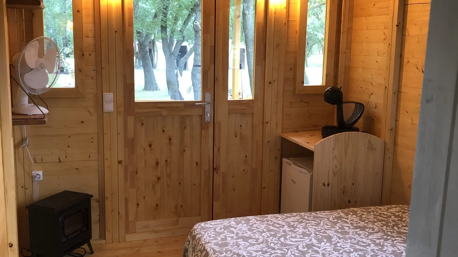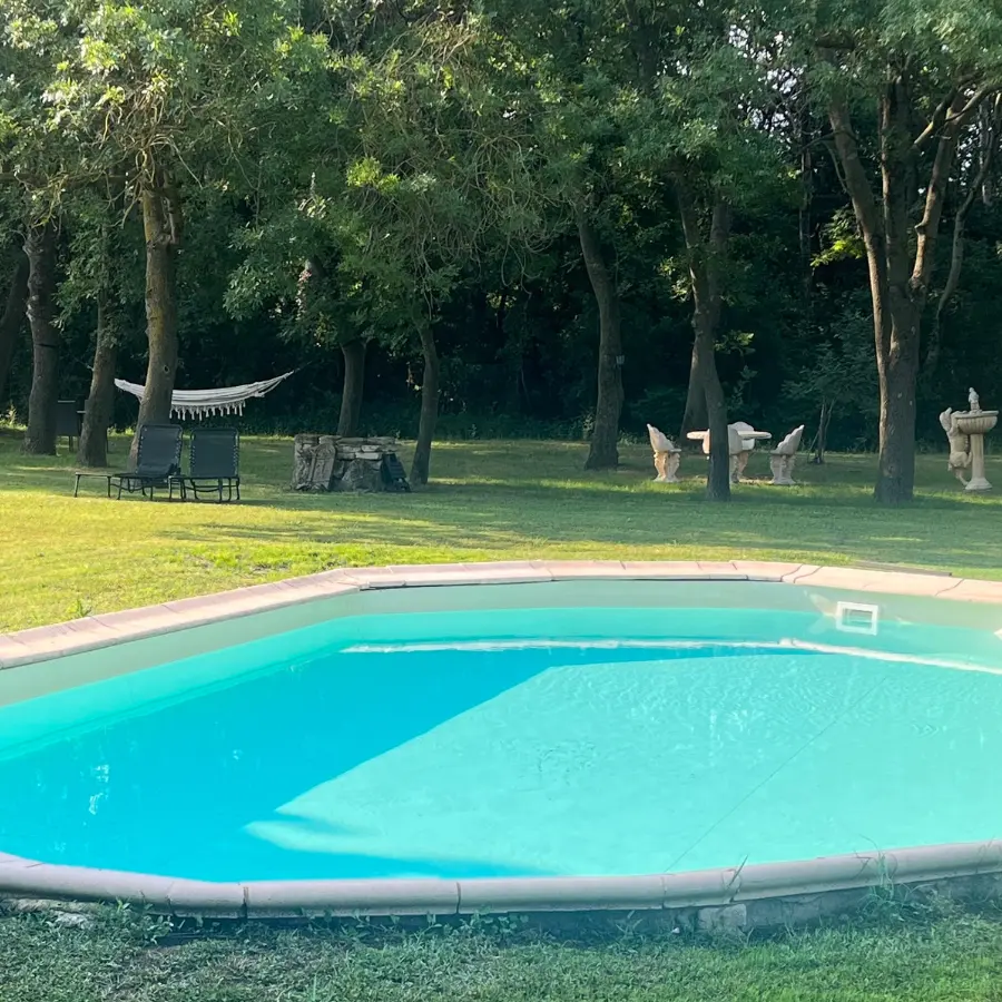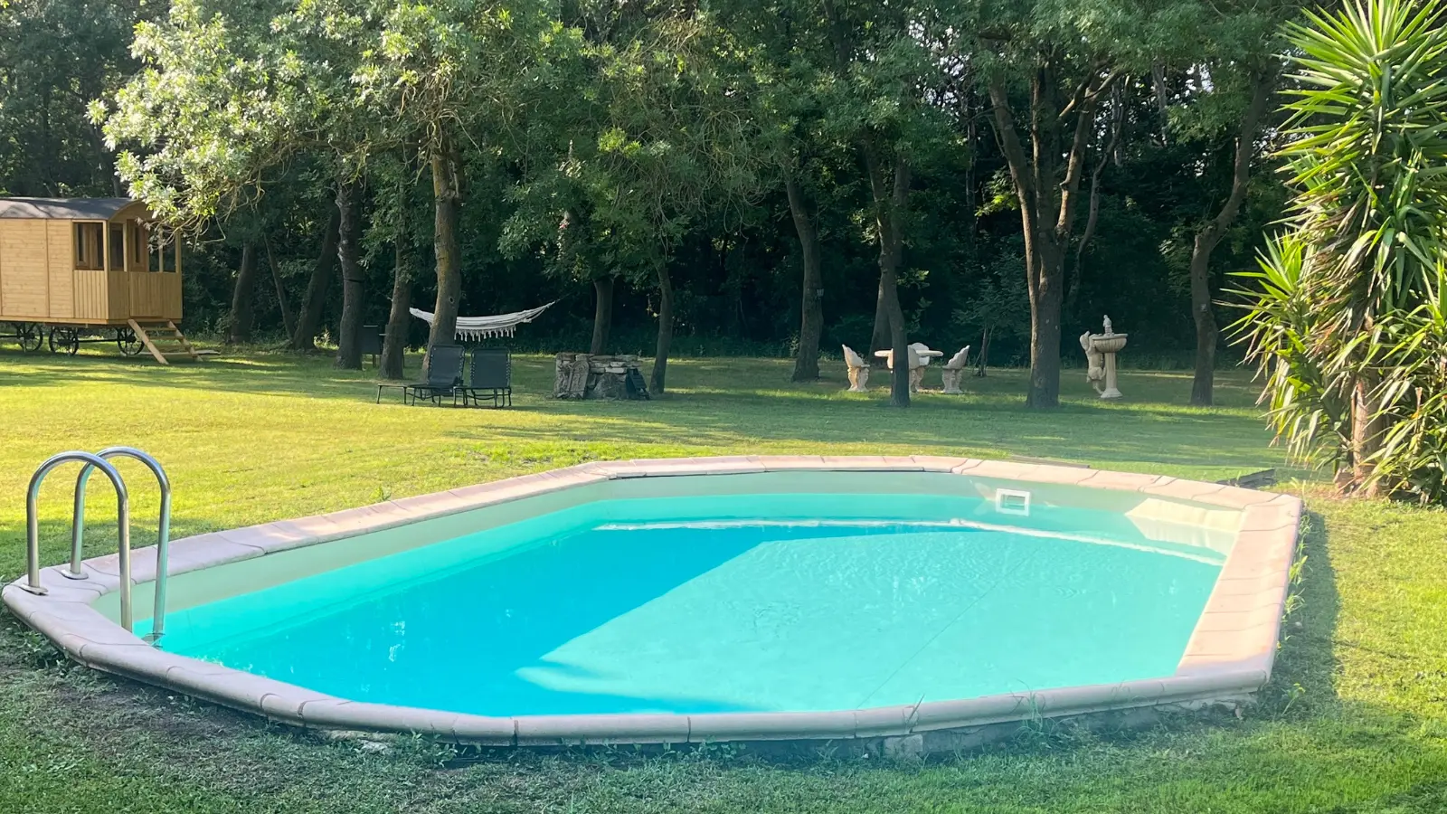 Amoureux de la nature, vous profiterez de cette roulotte située dans un parc arboré de 2 hectares au calme et flânerez aux bord de la piscine.