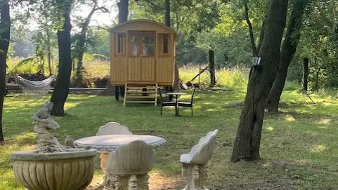Vous ne voudrez plus quitter ce lieux idyllique et unique dans cette roulotte tout confort.