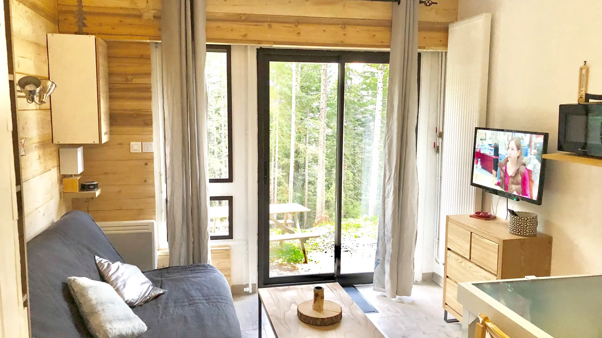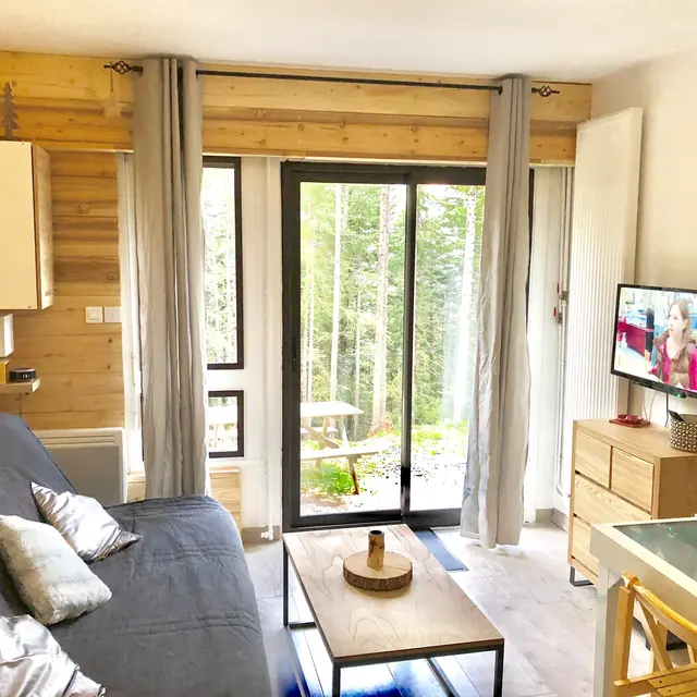 Ce studio en rez-de jardin-vous permettra de manger dehors. Entièrement rénové et lumineux grâce à sa grande baie vitrée donnant sur la forêt.
