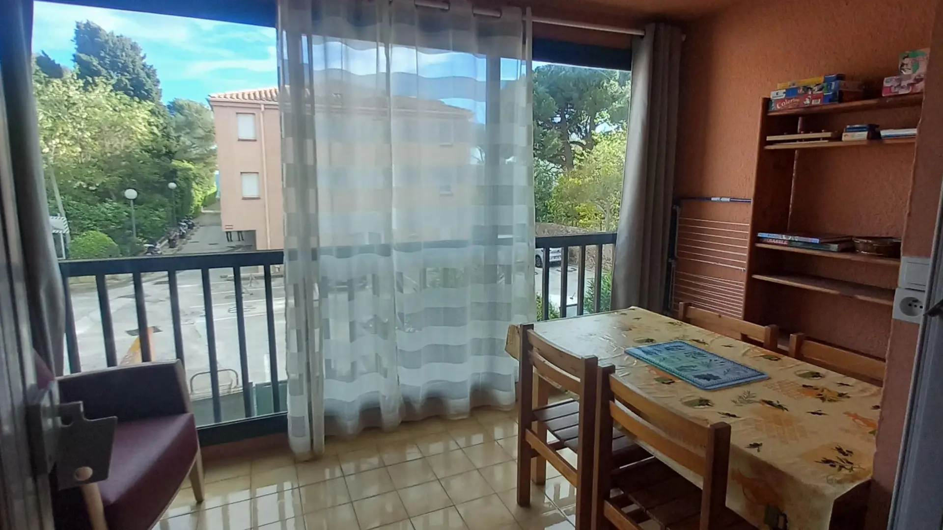 Appartement au 1er étage. Veranda de 7m² orientée sud avec vue sur mer. Pièce à vivre avec canapé lit type bz, kitchenette (four, micro onde, réfrigérateur, tv, TNT, ventilateur). Coin cabine à l'entrée avec lits superposés pour les enfants. Salle de bain (douche et wc). Possibilité de louer le kit bébé (lit parapluie et matelas, chaise haute/transat).