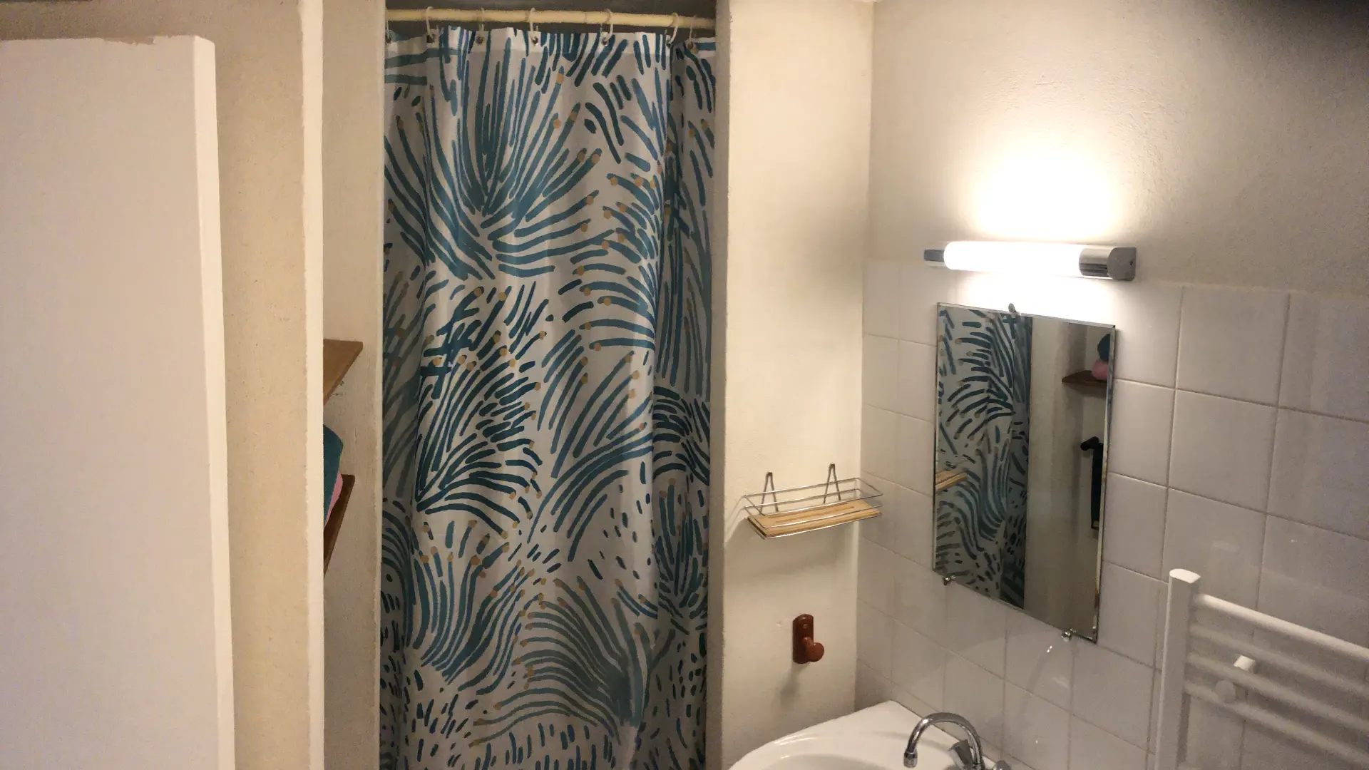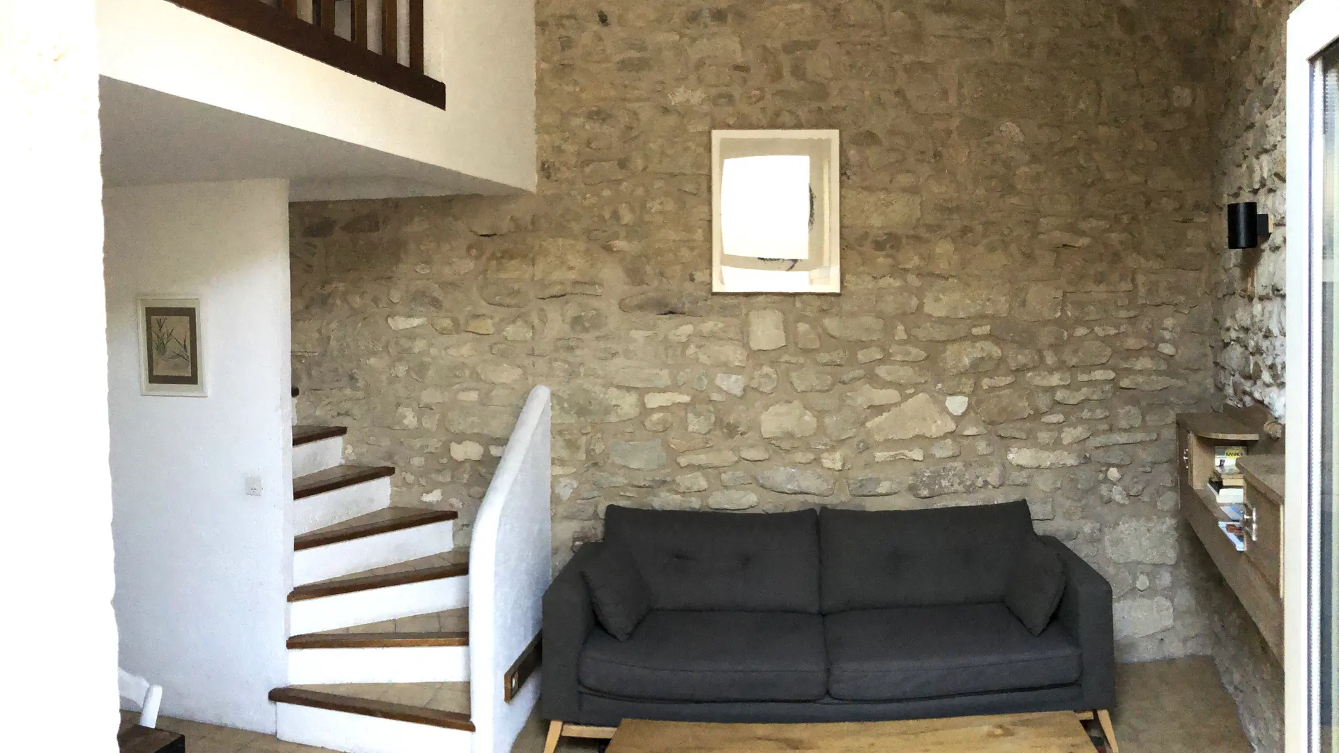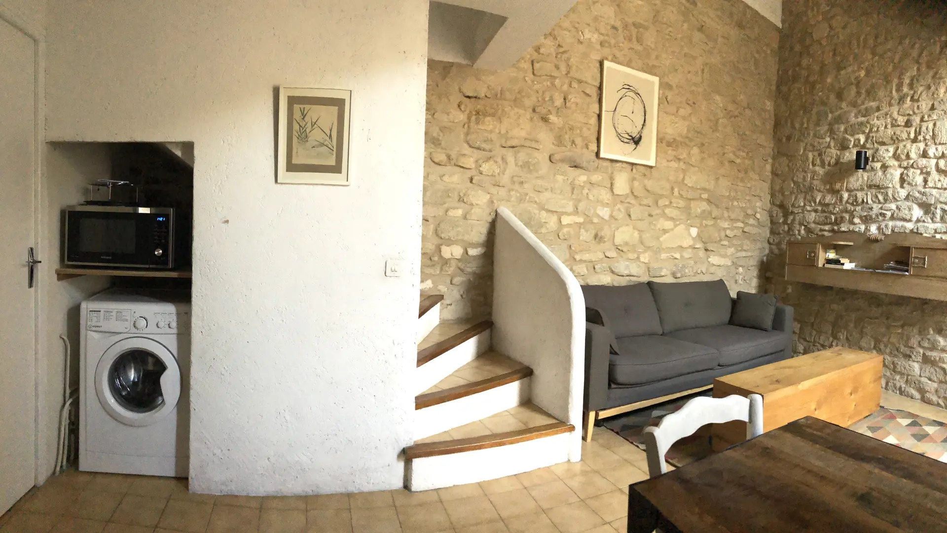 Accès indépendant en rez-de chaussée, il se compose d'une grande pièce avec coin cuisine, plaque induction , four mixte , réfrigérateur. Une salle à manger et coin salon avec un canapé convertible 140X200 cm en dépannage, une salle d'eau. A l’étage en mezzanine, un grand lit de 140cm et 1 lit de 90cm , une penderie .