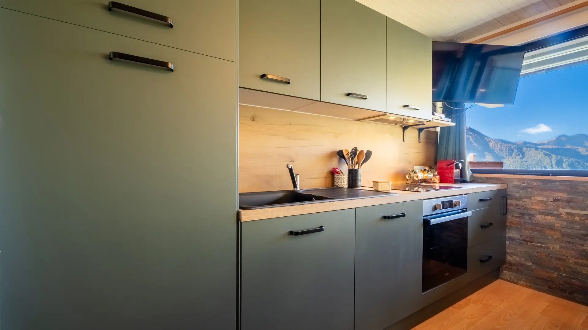 Vous profiterez d’une cuisine neuve ouverte sur la pièce à vivre entièrement équipée comprenant un four, un micro-ondes, un lave-vaisselle, machine à café, appareil à raclette, un frigo/congélateur et tous les équipements nécessaires (aspirateur, table + fer à repasser etc...) ainsi que d'une salle d’eau avec WC entièrement refaite en 2025.