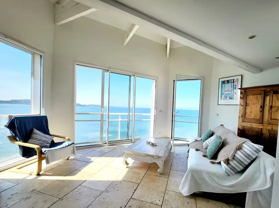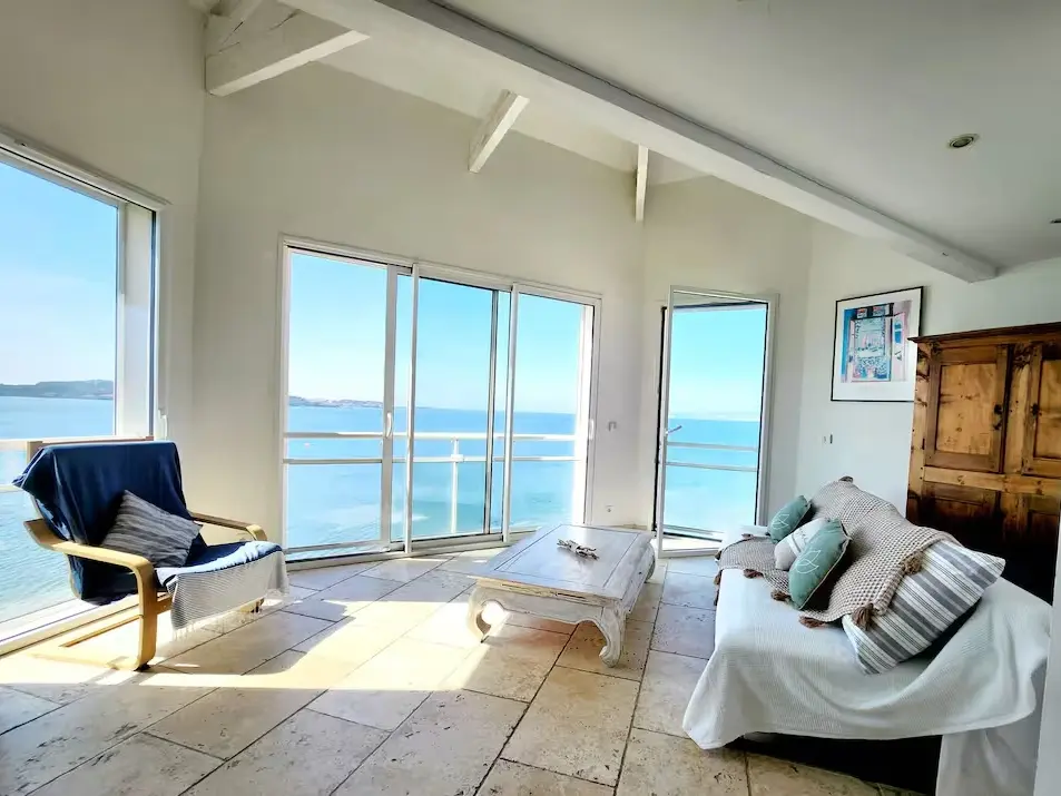 Le Brusc. Au 1er dans maison les pieds dans l'eau, studio avec vue panoramique sur la mer, 29 m² + chambre 10 m² en mezzanine. Tout confort, climatisé. Cuisine indépendante, Canal Plus, wifi. A 1 mn de la plage, jardin, parking privé