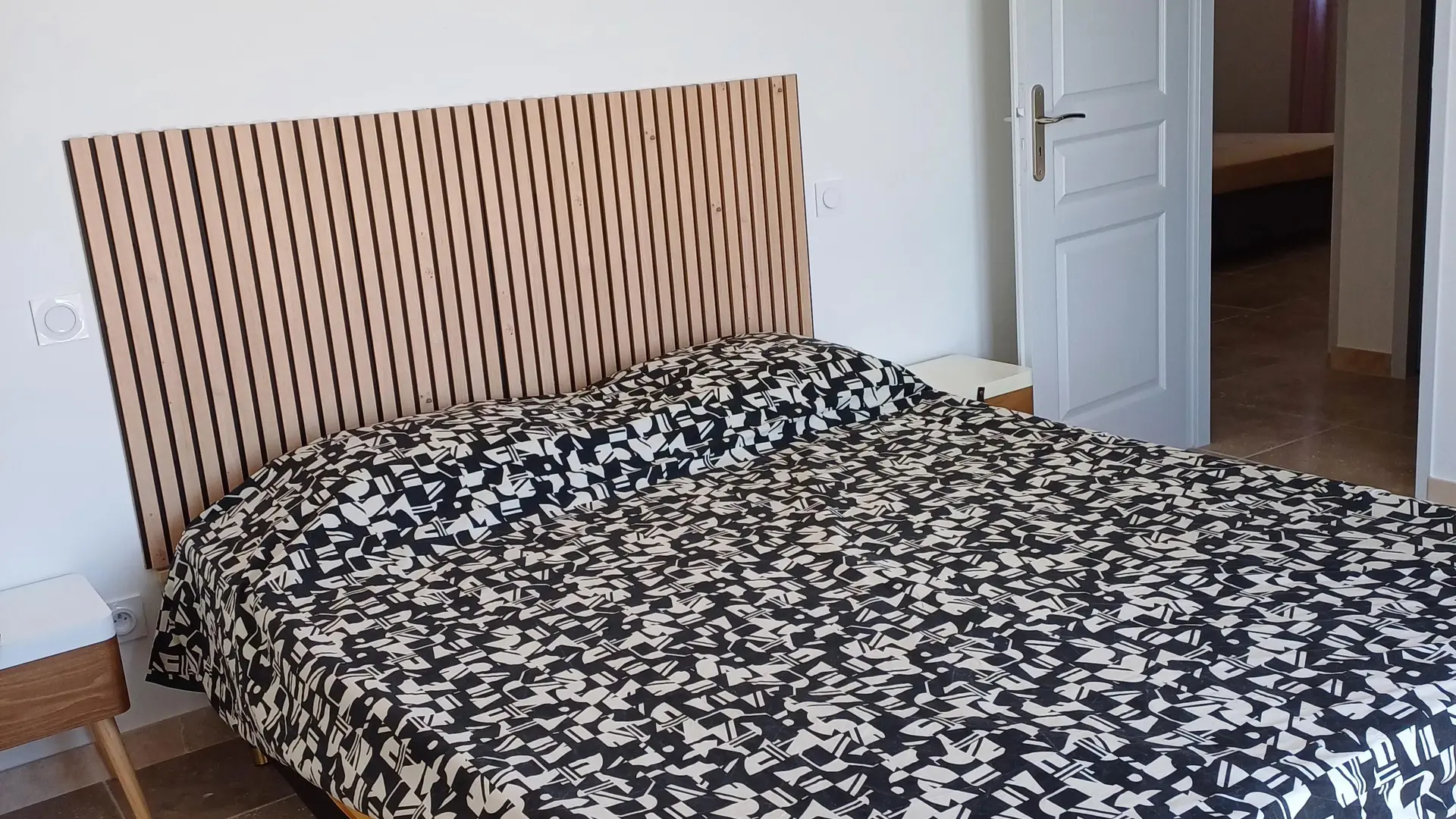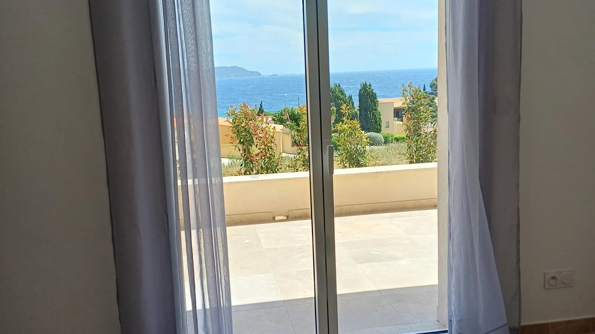 3 CHAMBRES SPACIEUSES CLIMATISEES DONT 2 ONT UNE VUE MER ET 1 UNE VUE CAMPAGNE, GRANDE CUISINE EQUIPEE OUVERTE SUR UN GRAND SALON CLIMATISE, VUE MER.