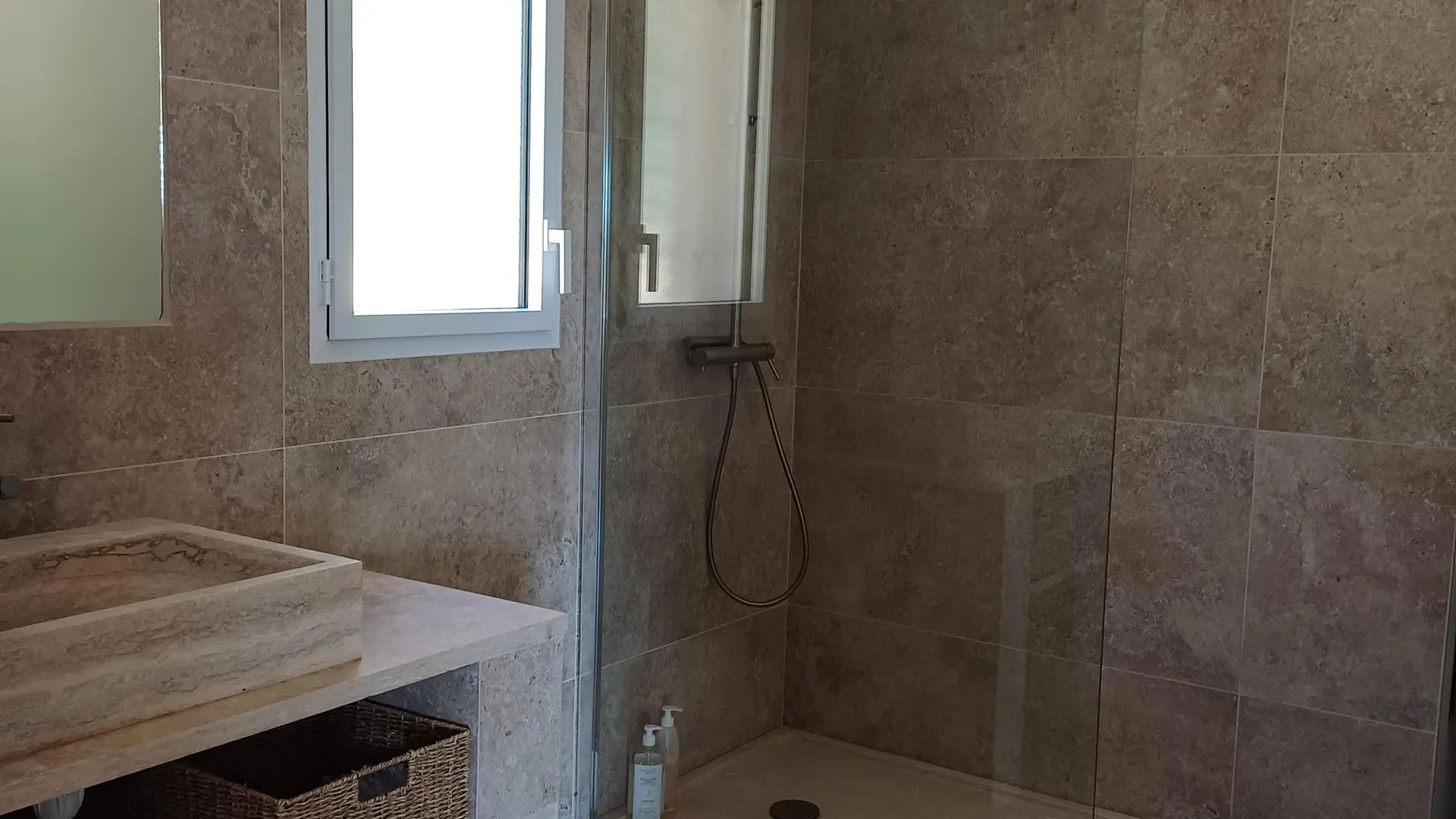UN WC SEPARE, UNE GRANDE SALLE DE BAIN AVEC DOUCHE ITALIENNE.